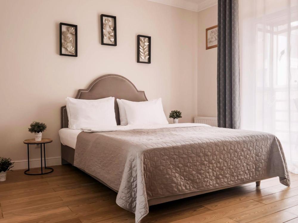 Двухместный номер сочетает в себе классический стиль и комфорт. Номер оборудован одной двуспальной кроватью размером 160x200 см, диван-кроватью, телевизором размером 43 дюйма, набором для приготовления чая и кофе и мини-кухней. В кухне есть все необходимые принадлежности. В номере есть гостиная с обеденным столом и большим угловым диваном.