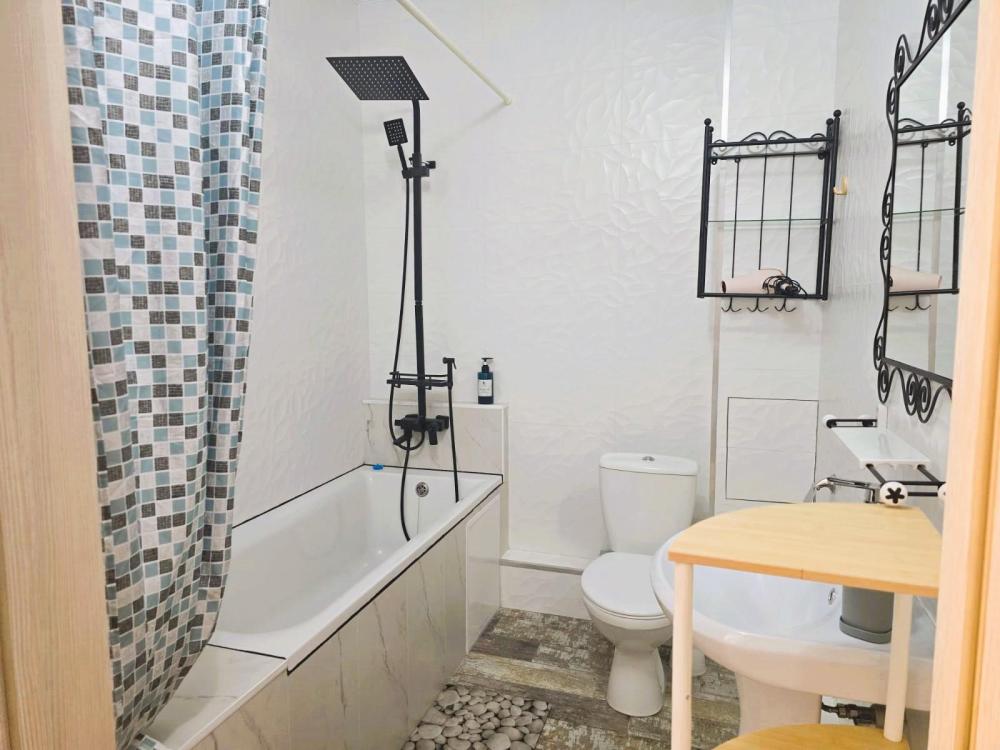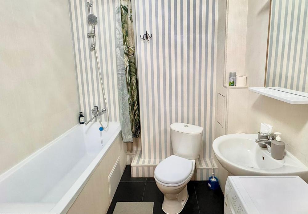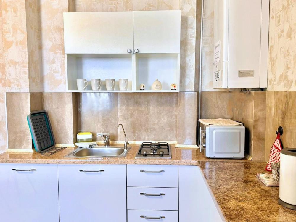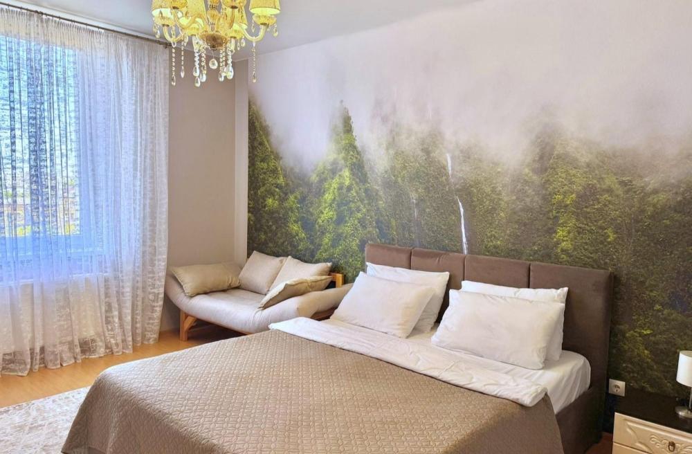 Однокомнатные апартаменты, находящиеся на 8 этаже, из которой открывается прекрасный вид. Вся квартира обставлена новой мебелью и современной техникой. Апартаменты вмещают до 2-х человек - Постельные принадлежности из натуральных материалов, Туалетные принадлежности, Предметы гигиены (шампунь, бальзам для волос, гель для душа), Одноразовые тапочки, Посуда, для приготовления и приема пищи, Wi-Fi, Телевизор, Холодильник, Стиральная машинка, Микроволновка, Газовая варочная поверхность, Чайник и кофеварка, Кофемашина, Фен для волос, Утюг и гладильная доска, Пылесос.