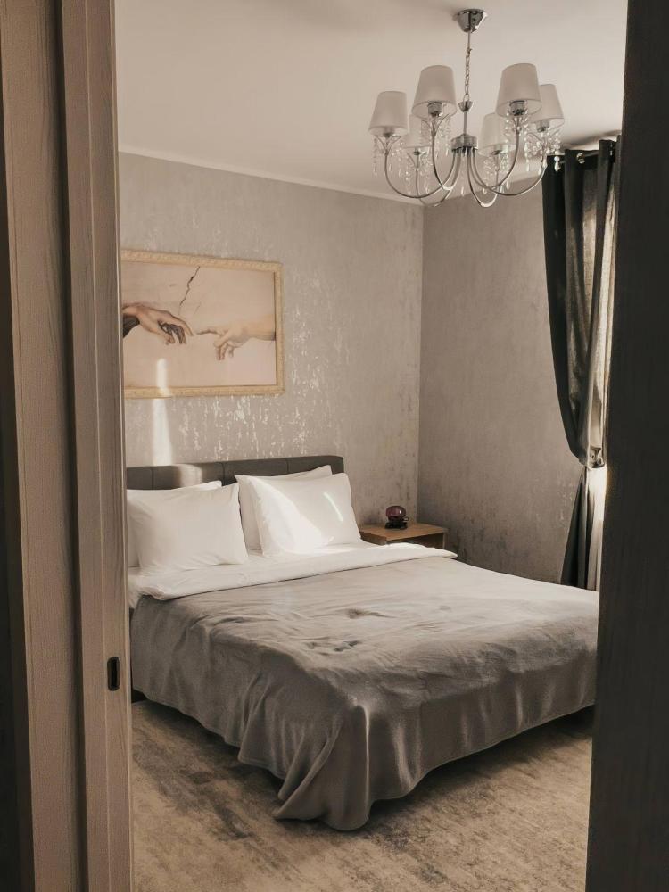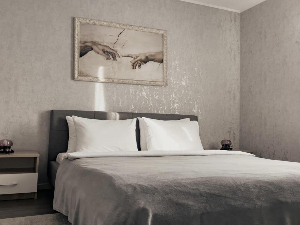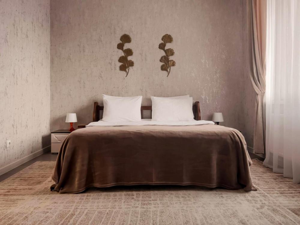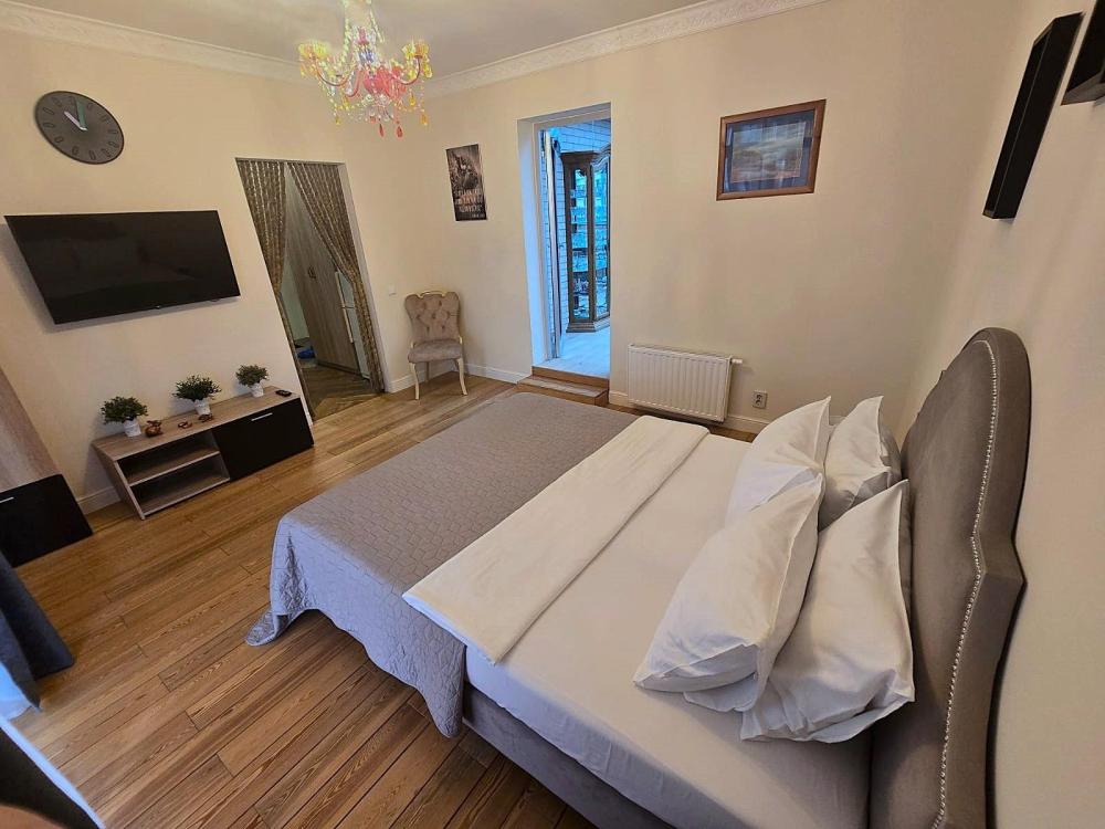 Трёхкомнатные апартаменты, находящиеся на 12 этаже, имеют 2 балкона, из которых открывается прекрасный вид на город. Также 3 отдельные комнаты, в каждой из которых есть телевизор. Вся квартира обставлена новой техникой и мебелью. Апартаменты вмещают до 6-ти человек - Постельные принадлежности из натуральных материалов, Туалетные принадлежности, Предметы гигиены (шампунь, бальзам для волос, гель для душа), Одноразовые тапочки, Посуда, для приготовления и приема пищи, Wi-Fi, Телевизор, Холодильник, Стиральная машинка, Микроволновка, Газовая варочная поверхность, Чайник и кофеварка, Кофемашина, Фен для волос, Утюг и гладильная доска, Пылесос.