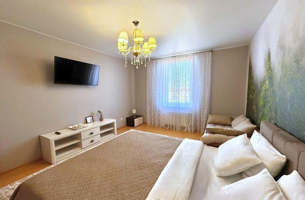 Однокомнатные Апартаменты, находящиеся на 8 этаже, из которых открывается прекрасный вид на город и озеро. Вся квартира обставлена новой мебелью и современной техникой. Апартаменты вмещают до 4-х человек - Туалетные принадлежности, Предметы гигиены (шампунь, бальзам для волос, гель для душа), Одноразовые тапочки, Посуда, для приготовления и приема пищи, Wi-Fi, Телевизор, Холодильник, Стиральная машинка, Микроволновка, Газовая варочная поверхность, Чайник и кофеварка, Кофемашина, Фен для волос, Утюг и гладильная доска, Пылесос.