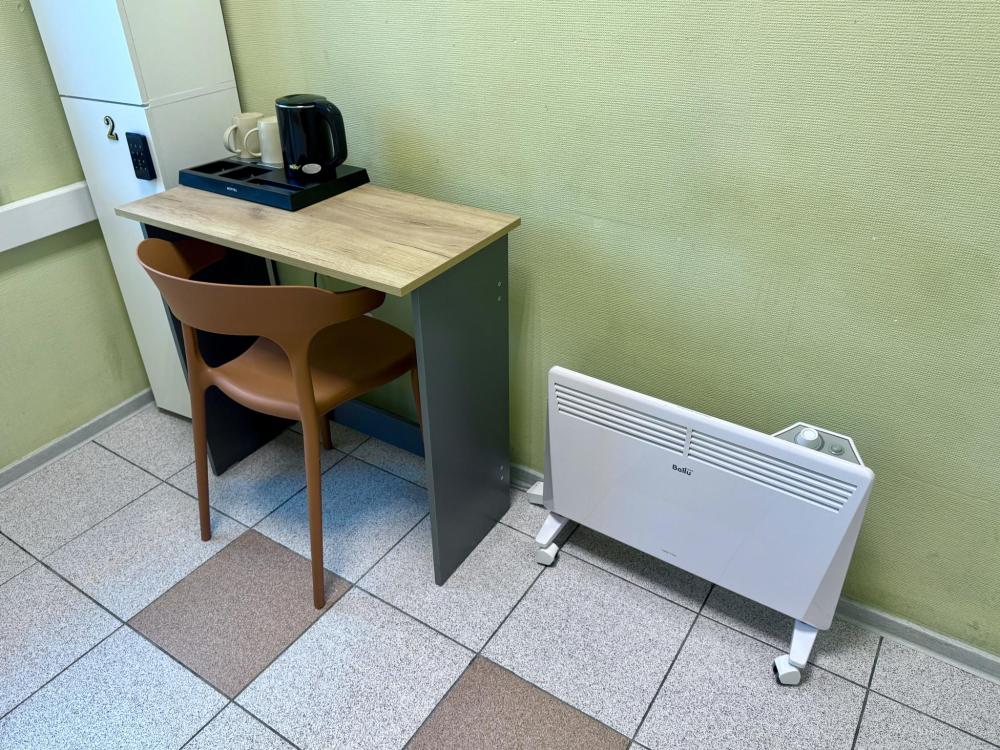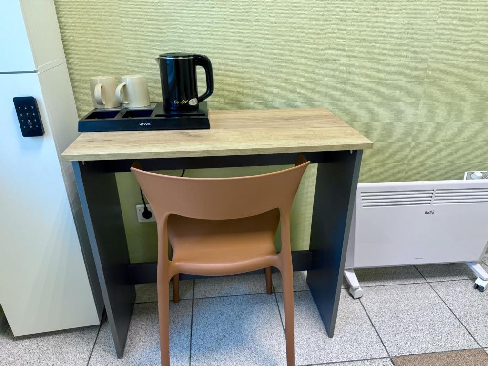 Номер эконом с 1 односпальной кроватью и электронным замком. В номере: стол, стул, сейф, чайник. Гостям предоставляется постельное белье и полотенца. Удобства общие, на этаже.