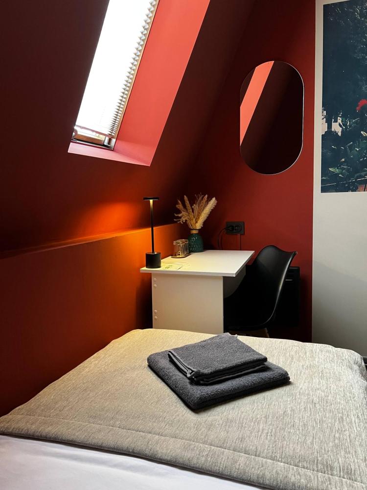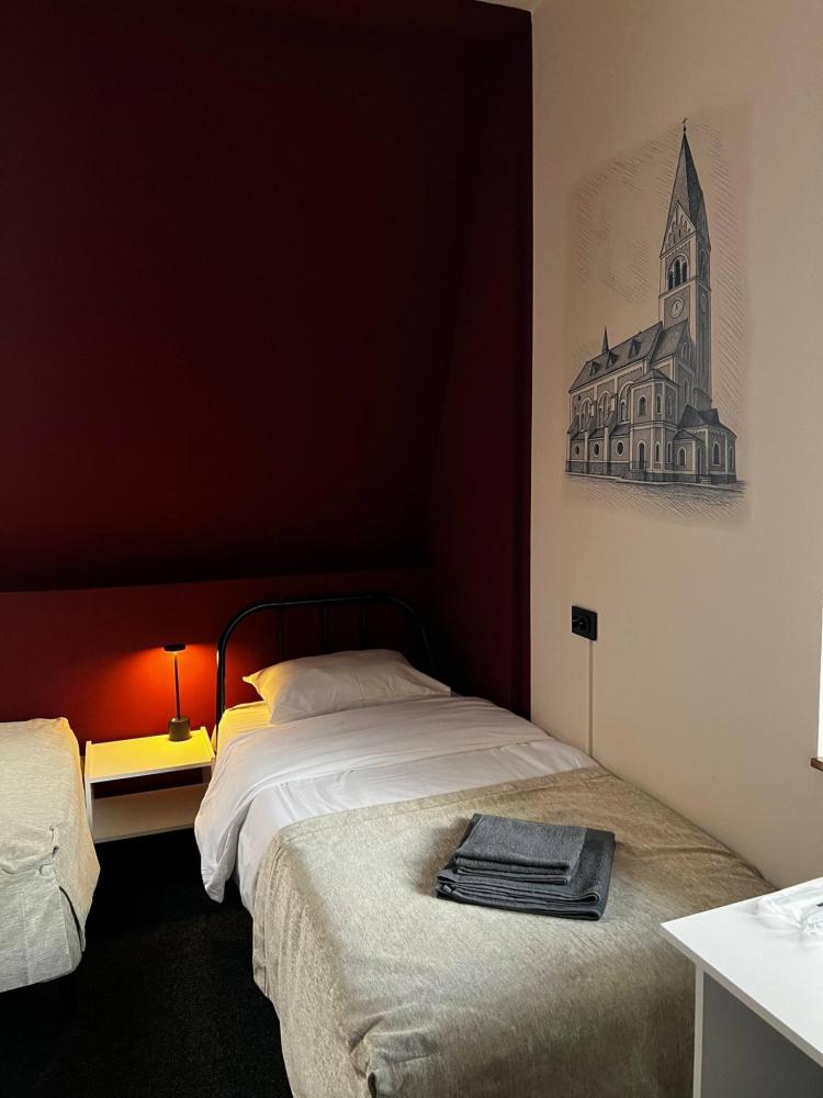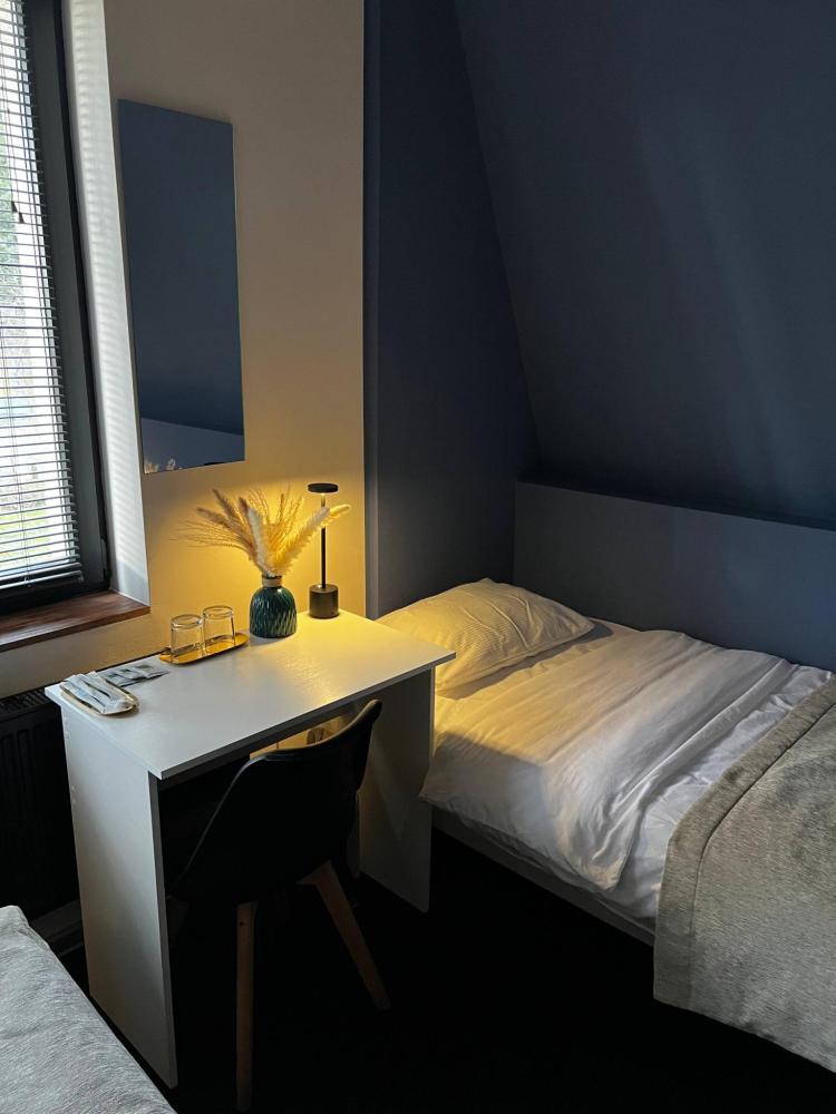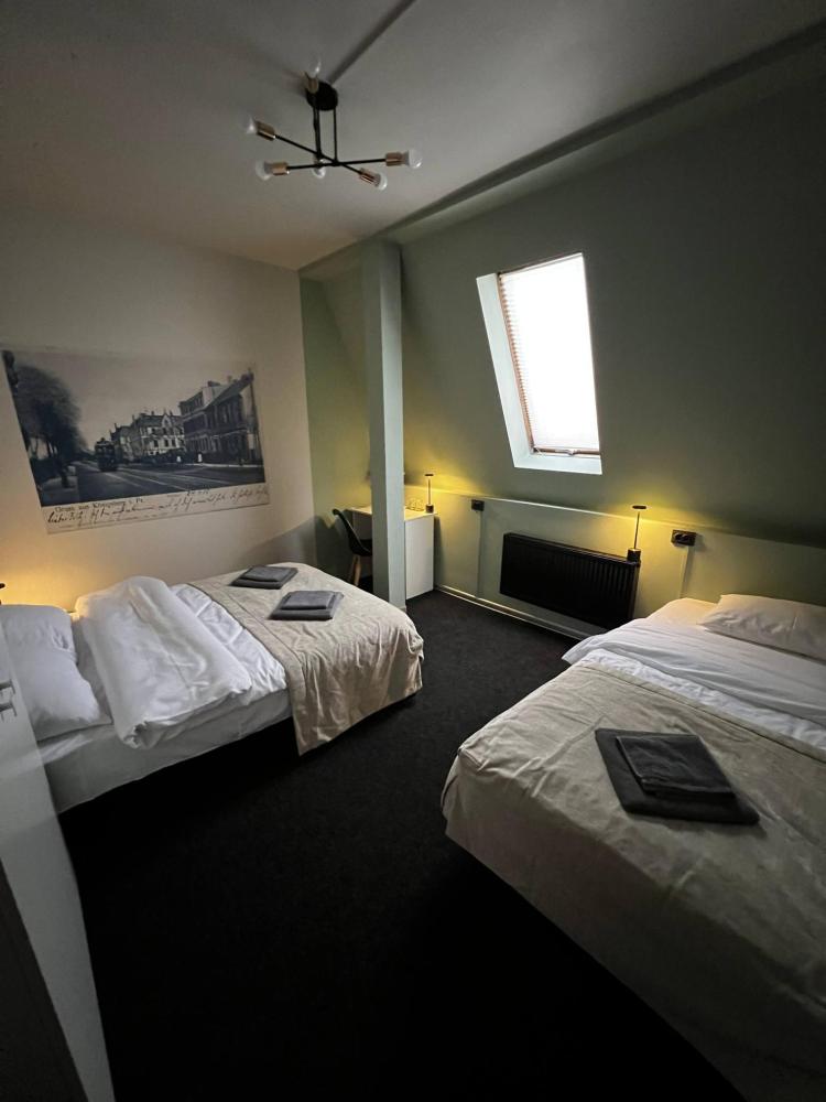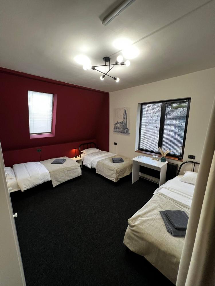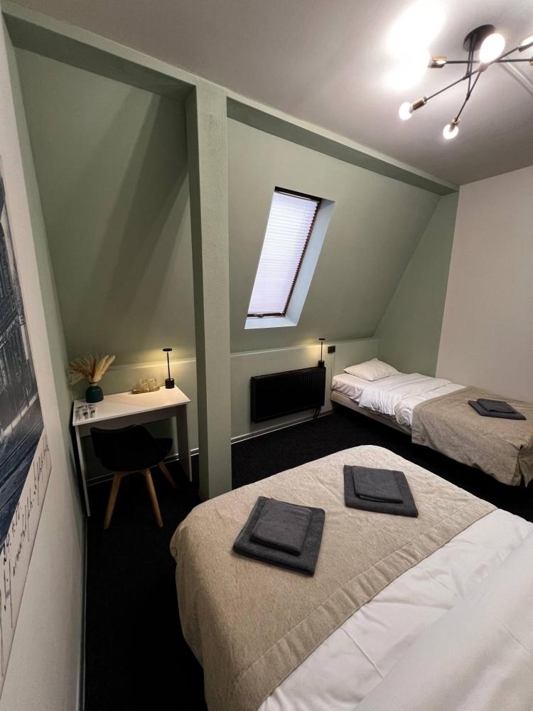 В номере: две односпальные кровати, стильная картина с панорамой города, тёплое освещение и уютная атмосфера, рабочее место с креслом, 2 шкафа для одежды, полотенца и постельное белье. Удобства общие за пределами номера.