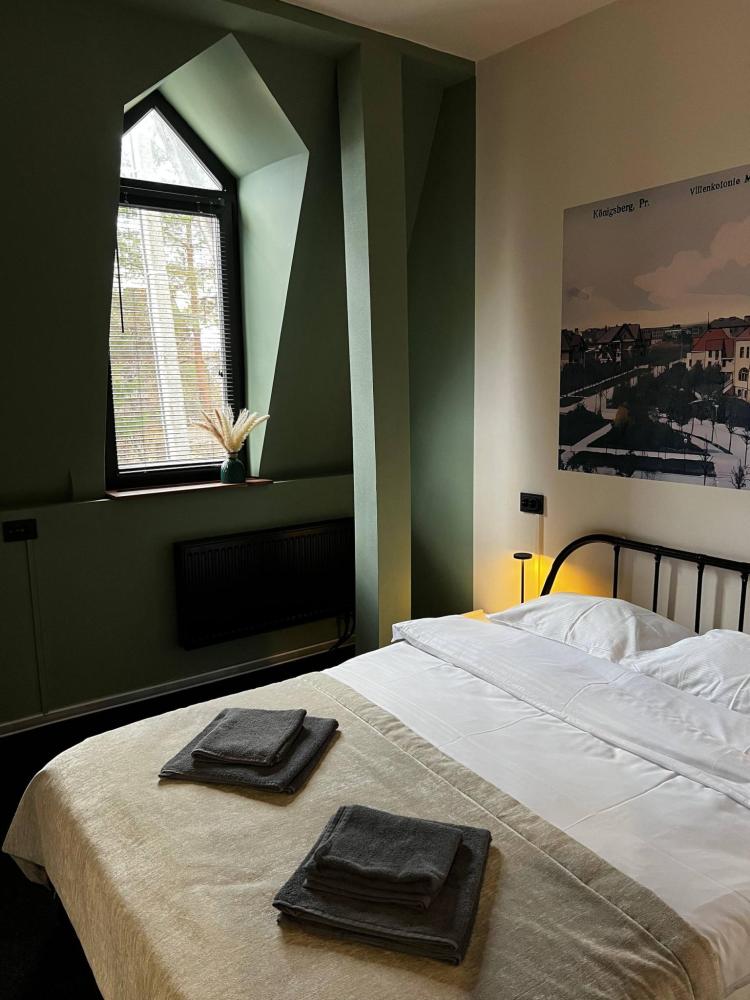 Номер «Понарт» — в духе промышленного Кёнигсберга. Этот номер вдохновлён районом Понарт — когда-то промышленным и рабочим, а сегодня уютным и историческим. На стене — стилизованное изображение Понартского пивоваренного завода, одного из самых известных зданий старого города. В номере: комфортная двуспальная кровать, спокойный зелёный оттенок стен и лаконичный интерьер, уютное освещение, прикроватная тумба и ночник, полотенца и постельное белье. Удобства общие за пределами номера.