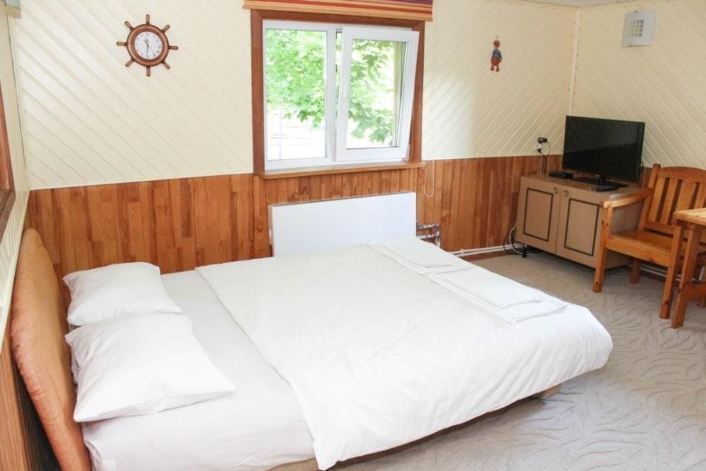 1-комнатный номер предназначен для проживания 1-2х человек, есть возможность предоставления дополнительного места. Площадь номера 35 кв. м. Имеется терраса с видом на лесной массив. В номере: двуспальная кровать, диван, зона для отдыха, чайная станция (чай, сахар посуда ), утюг и гладильная доска( по запросу), телевизор со спутниковыми каналами, Wi-Fi, дополнительное спальное место. В ванной комнате: ванна, комплект полотенец, косметические принадлежности, фен( по запросу), тапочки.