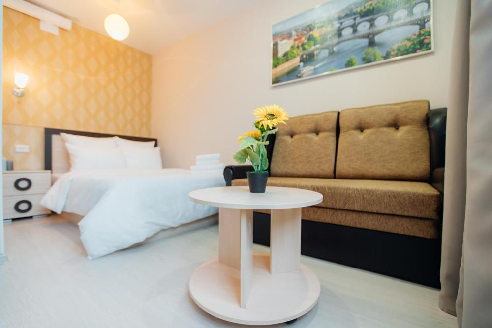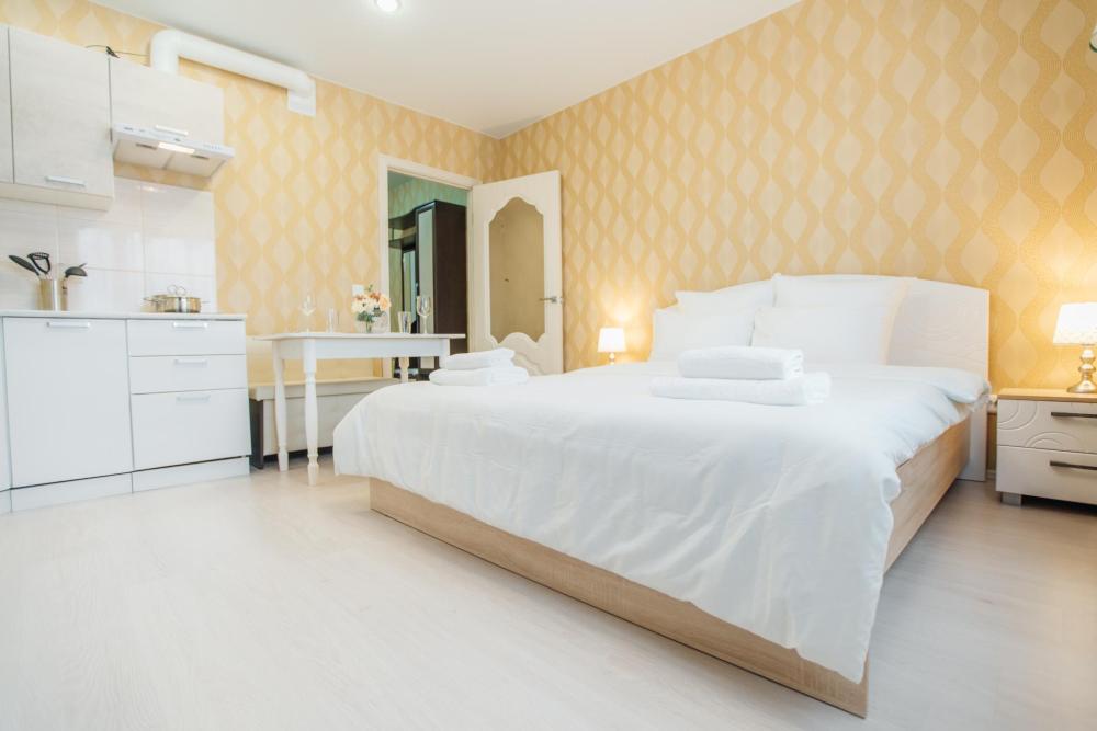 Квартира-студия в тихом центре, в новом многоэтажном комплексе состоящем из 5 домов расположенном в 5 минутах езды на машине от центра города. С новым и качественным ремонтом. Современная мебель, новая сантехника, натяжные потолки, хорошая шумоизоляция. Есть все необходимое для проживания. В комнате находится двуспальная кровать с ортопедическим матрасом, шкаф, ЖК-телевизор, а кухня оборудована всей необходимой бытовой техникой (холодильник, микроволновая печь, электрический чайник) и посудой для приготовления пищи. Ванная, туалет – кафель, стиральная машина автомат. Цифровое TВ , высокоскоростной безлимитный интернет (Wi-Fi), утюг, гладильная доска, сушилка для белья. Предоставляются комплекты постельного белья, махровые полотенца, одноразовые тапочки, набор гостиничной парфюмерии: шампунь, гель и мыло.