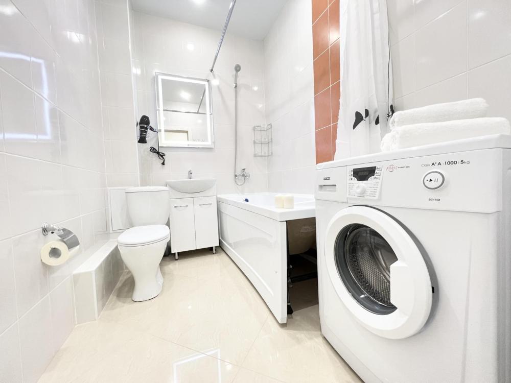 Комфортабельная квартира в новом доме в центре города, с евро ремонтом. Во дворе есть парковочное место. В распоряжении гостей: большая двуспальная кровать с мягкими подушками, и два двуспальных дивана. Дополнительное спальное место предоставляется по запросу . Цифровое телевидение, высокоскоростной безлимитный интернет (wi-fi). Кухня оснащена холодильником, микроволновой печью, электрическим чайником, посудой и столовыми приборами. Просторная ванная комната, стиральная машина.Из дополнений – утюг, гладильная доска, раскладная сушилка для белья. Предоставляются одноразовые мыло, гели, шампуни и тапочки.