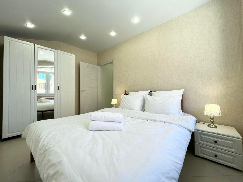 Комфортабельная квартира в новом доме в центре города, с евро ремонтом . Во дворе есть парковочное место.В квартире современная мебель, новая сантехника, натяжные потолки, стеклопакеты, фен, утюг, гладильная доска, сушилка для белья, стиральная машина. Есть все необходимое для проживания. В Вашем распоряжении: две большие двуспальные кровати с мягкими подушками, один двуспальный раскладной диван и одна двухъярусная кровать. Дополнительное спальное место предоставляется по запросу . Цифровое телевидение, высокоскоростной безлимитный интернет (wi-fi). Кухня оснащена холодильником, микроволновой печью, электрическим чайником, посудой и столовыми приборами. Просторная ванная комната, стиральная машина.Из дополнений – утюг, гладильная доска, раскладная сушилка для белья. Предоставляются одноразовые мыло, гели, шампуни и тапочки.