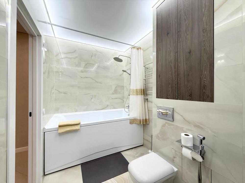 Комфортабельная 2 -ух комнатная квартира с большой кухней-гостиной, панорамными окнами и камином ? в новом доме, с евро ремонтом и стильным дизайном.Есть парковочное место на подземном паркинге с видеонаблюдением ?(500₽/сутки) ❗️ В Вашем распоряжении: две большие двуспальные кровати (160*200) с мягкими подушками, двуспальный диван king size , а так же диван аккордеон (120*200) и детская кроватка.Утюг, гладильная доска, сушилка для белья, кондиционер в каждой комнате. Есть все необходимое для проживания! ?Отдельная гардеробная со стиральной и сушильной машиной ?? Кухня оснащена всеми необходимыми бытовыми приборами (встроенный холодильник, свч, электрический чайник, духовка) и столовыми принадлежностями (кастрюли, сковорода, кружки, тарелки, столовые приборы). ? Цифровое телевидение, СМАРТ TV(телевизор в каждой комнате), высокоскоростной безлимитный интернет (wi-fi), доступ без vpn в YouTube и Instagram.? Просторная ванная комната с глубокой чашей 200*100.✨Предоставляем комплекты постельного белья, махровые полотенца, одноразовые тапочки, набор гостиничной парфюмерии: шампунь, гель и мыло. ? Идеальная чистота и порядок. После каждого нашего гостя выполняется профессиональная уборка всей квартиры, замена постельного белья и полотенец, дезинфекция санузла. ⚠️He для торжеств и шумных компаний, перед квартирой установлена камера наблюдения!Фотографии соответствуют данной квартире в действительности. Квартира сдаётся исключительно для проживания порядочным людям. Мы предоставляем полный комплект отчетных документов для командированных ( БСО + кассовый чек онлайн с QR-кодом), кроме того возможность безналичного расчета для организаций. Делаем временную регистрацию длительностью 3 месяца и на 1 год. ❗️ ПРАВИЛА ЗАСЕЛЕНИЯ И ПРОЖИВАНИЯ. Заселение с 14:00, выезд в день выезда до 12:00! *в выходные и праздничные дни заселение с 15:00* Заселение дистанционное, необходимо предоставление документов - паспорт: главная страница и страница прописки и селфи (отправка фото через мессенджер, серию и номер паспорта можно закрыть ). проживание гостей младше 18 лет только с официальными опекунами ;проживание гостей 18-25 лет по согласованию с арендодателем - Лицам в алкогольном или наркотическом опьянении будет отказано в заселении. - Заселение с домашними животными строго по предварительному согласованию! - Курение в квартире строго запрещено, разрешено курение только на балконе - При нарушении правил проживания в многоквартирных домах (в том числе шум после 22.00 часов), оставляем за собой право выселения гостя без возврата уплаченной за проживание суммы.❗️ЗАЛОГ❗️: Берется за соблюдение правил проживания: количество проживающих, в том числе гостей, курение, чистоту и уровень шума в квартире, который установлен законодательством. В случае нарушения одного из пунктов правил, мы имеем право вас выселить без возврата денежных средств за квартиру и залога. ❗️Сумма залога зависит от: количества, возраста проживающих, длительности бронирования, цели снятия квартиры. Может составлять от 1000 рублей и выше, на усмотрение арендодателя. Мы должны быть уверены, что ваше проживание пройдет без инцидентов, так как уважаем гостей, а также соседей.