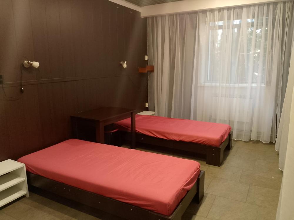 В номере: три двухъярусные кровати, стулья, вешалка, индивидуальные шкафчики. Удобства (душ, душевая кабина, туалет, раковина, фен) на этаже.