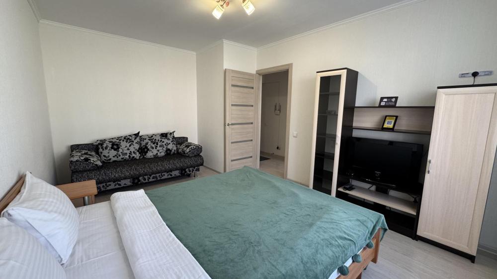 Чистая, уютная и удобная квартира с полным набором бытовой техники, необходимой для комфортного проживания. На кухне соль, сахар, чай, кофе. Вся необходимая посуда и бытовая техника. В ванной комнате одноразовые средства личной гигиены: мыло, гель, шампунь, зубной набор. Большие и маленькие полотенца на каждого гостя. Также для гостей имеется: фен, утюг, гладильная доска, сушилка для белья, стиральная машина, цифровое ТВ, интернет (Wi-Fi).