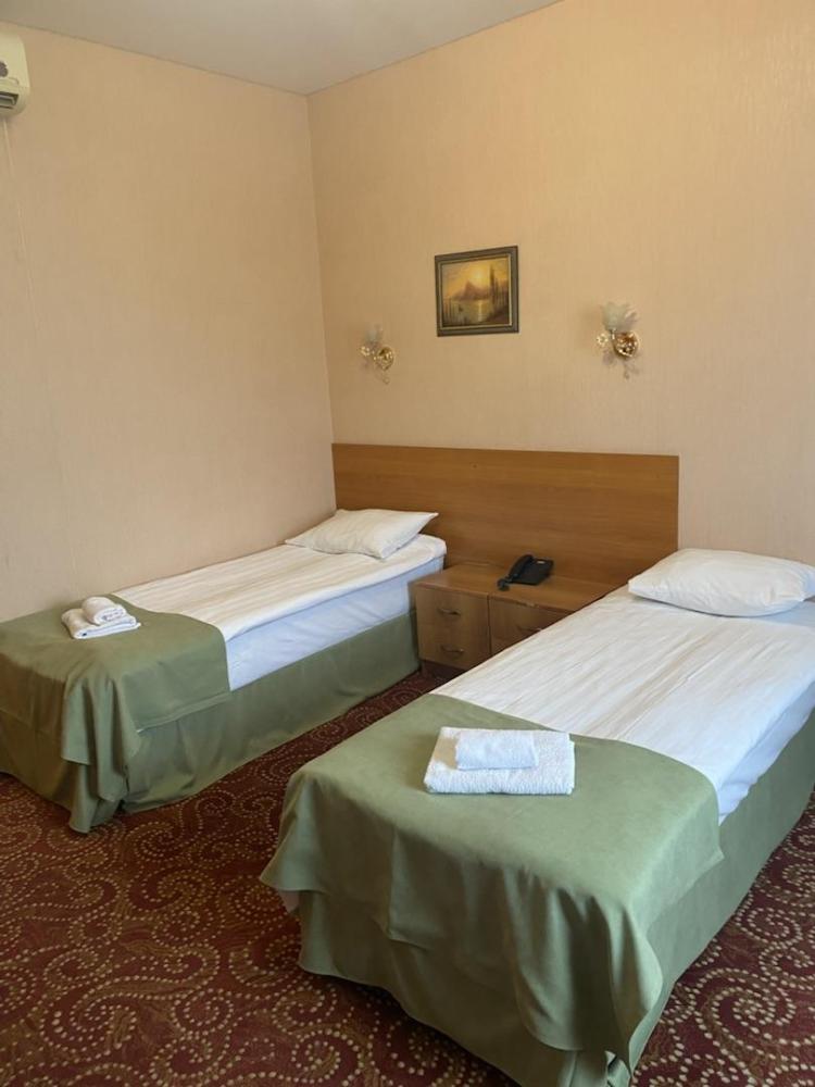В номере имеются две односпальные кровати, неограниченный Wi-Fi, телевизор, чайный набор, ванная комната, фен, гигенические принадлежности, тапочки.