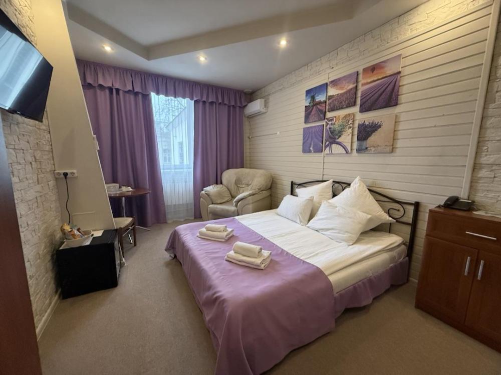 В номере имеются одна двуспальная кровать, Wi-Fi и проводной Интернет, телевизор, чайный набор, ванная комната, фен, гигенические принадлежности, тапочки.
