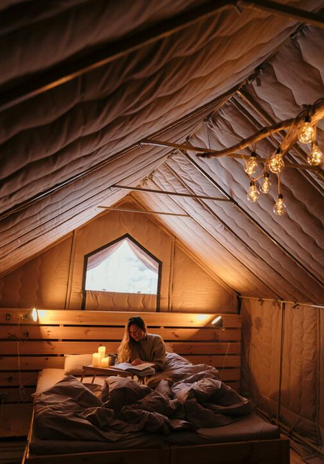 Большой и комфортный домик с видом на Волгу, в котором свободно себя чувствуют до 4 человек. Домик выполнен из утепленного дышащего материала: летом в нем свежо, а зимой — тепло, т.к. стоит регулируемый круглосуточный обогрев до +31С. Внутри вы найдете все необходимое для беспечного отдыха: гардеробный шкаф, комфортные кровати с электропростынями, двухместный диван, холодильник, турка, кухонные и гигиенические принадлежности, обогреватель и биотуалет. Рядом с каждым домиком есть мангальная площадка и садовая мебель — вся территория в вашем распоряжении. Здание с туалетами и тёплым душем расположены в шаговой доступности от домика. У нас 7 душевых кабин с санузлами, по одной кабинке на два домика. В здании установлены теплые полы и проводится постоянная уборка.