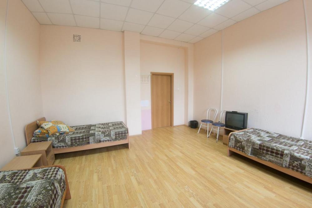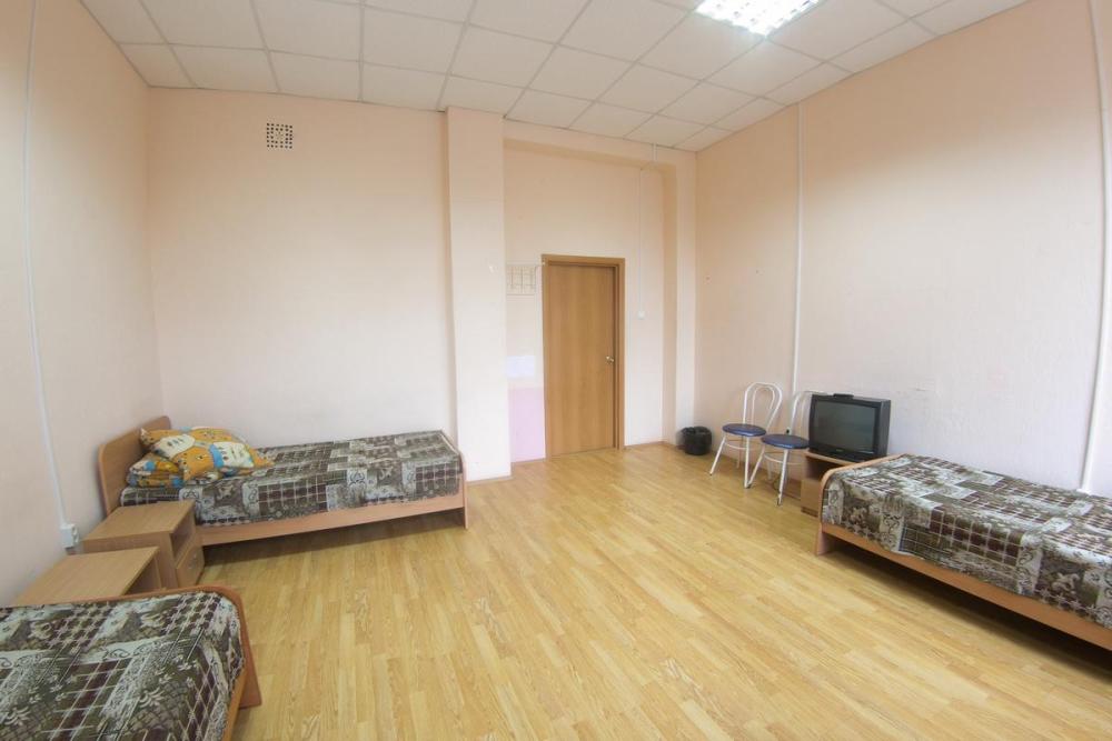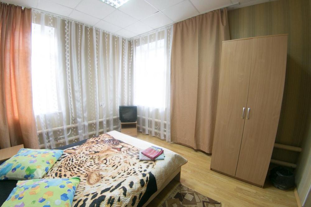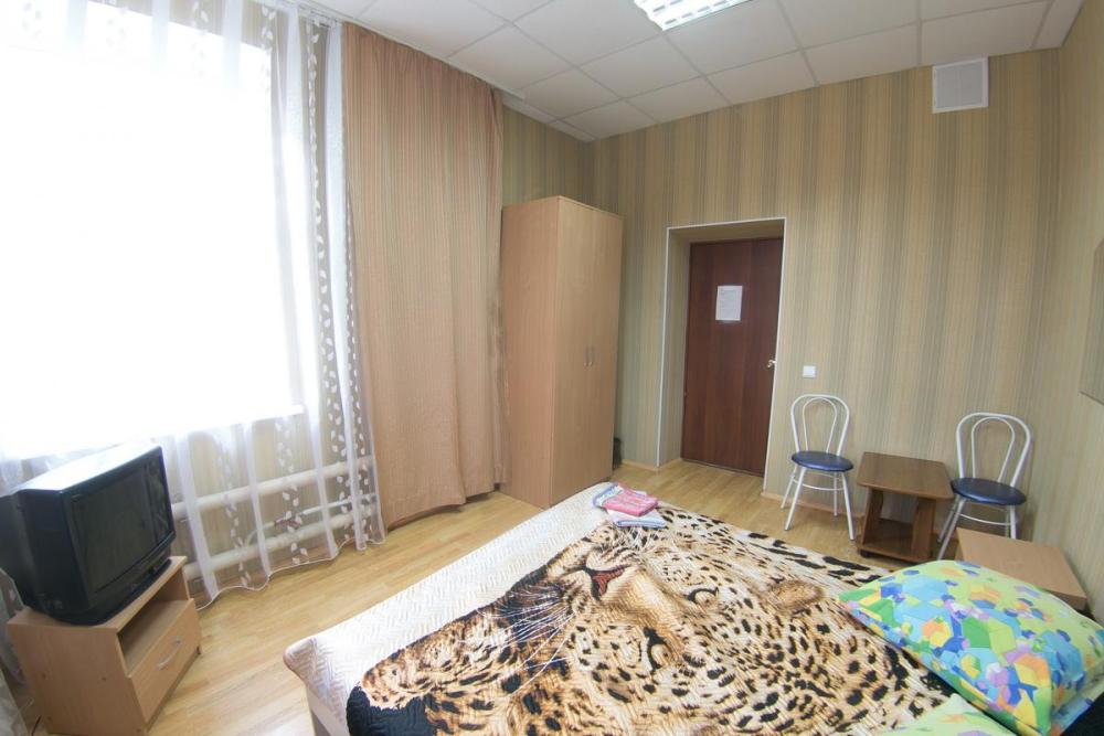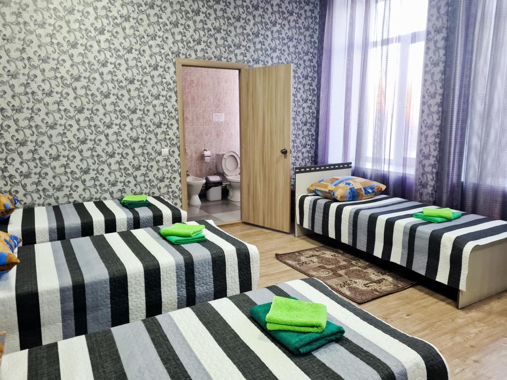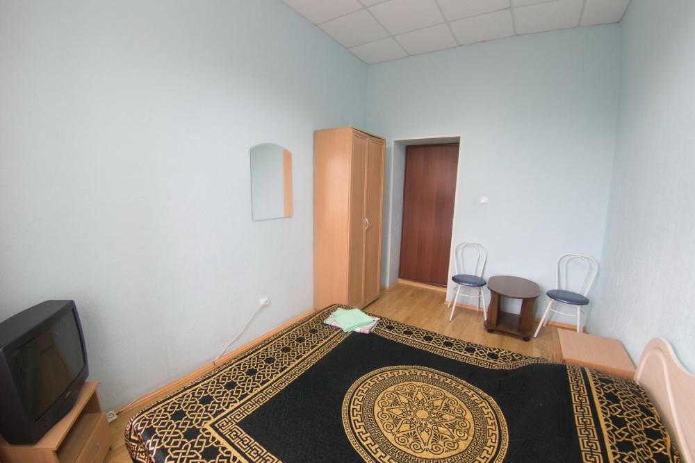 В номере: 3 односпальные или двуспальная и односпальная кровати, шкаф, телевизор. Удобства общие на этаже.