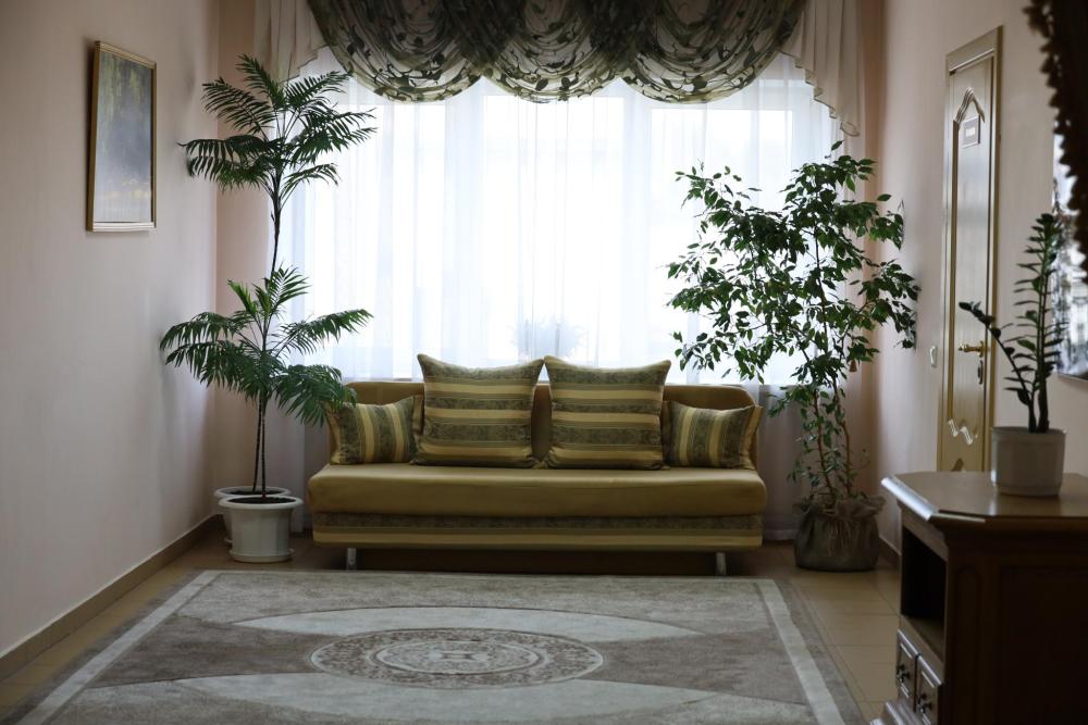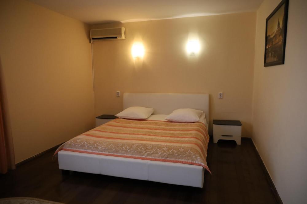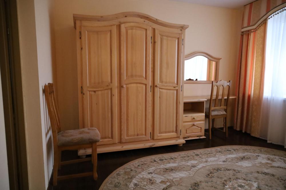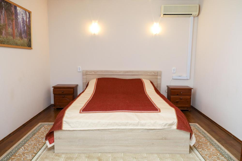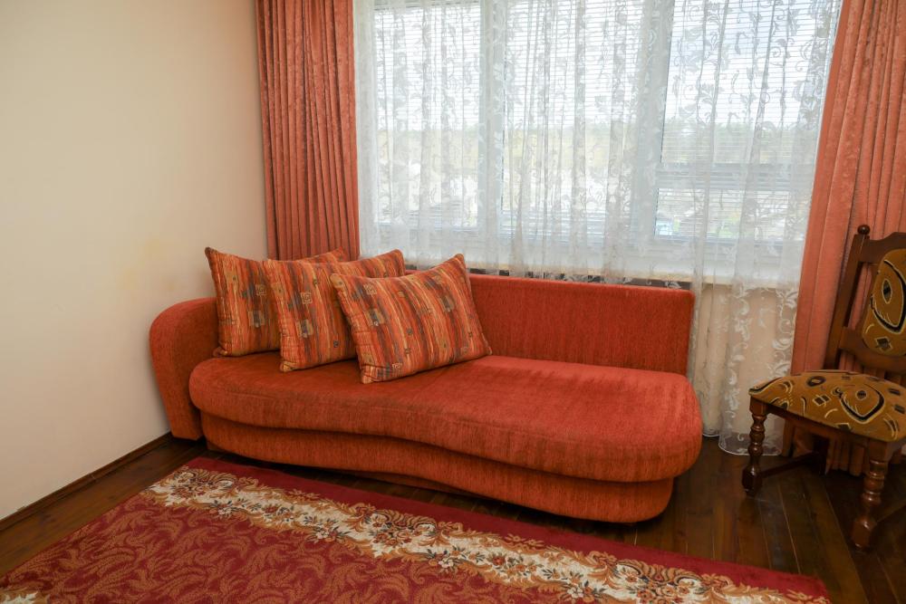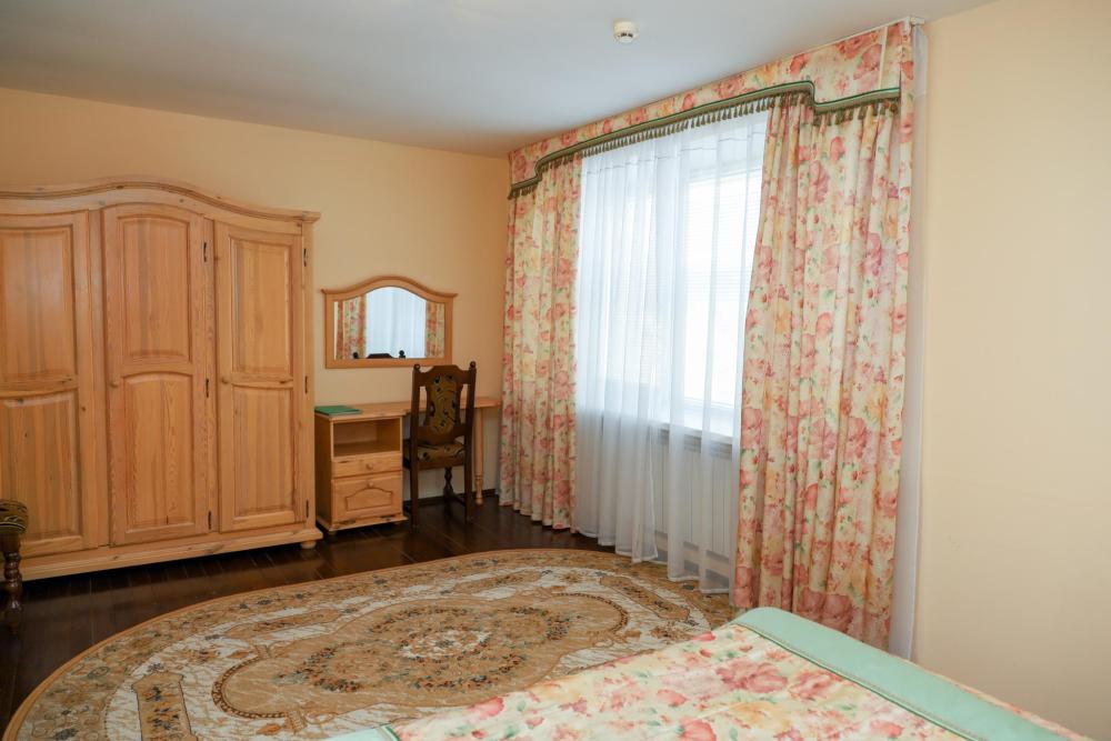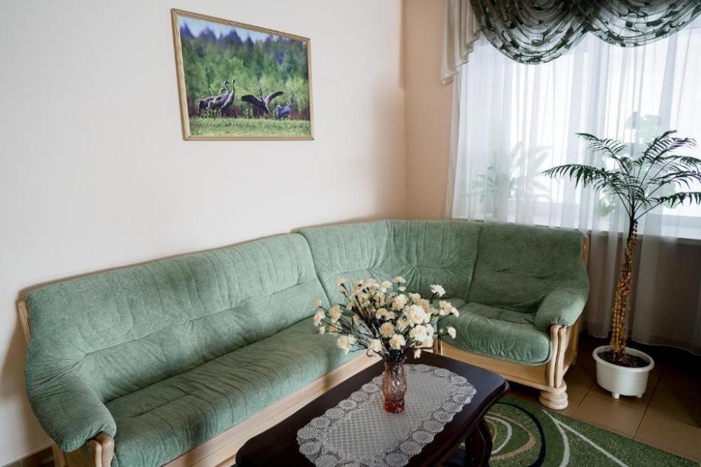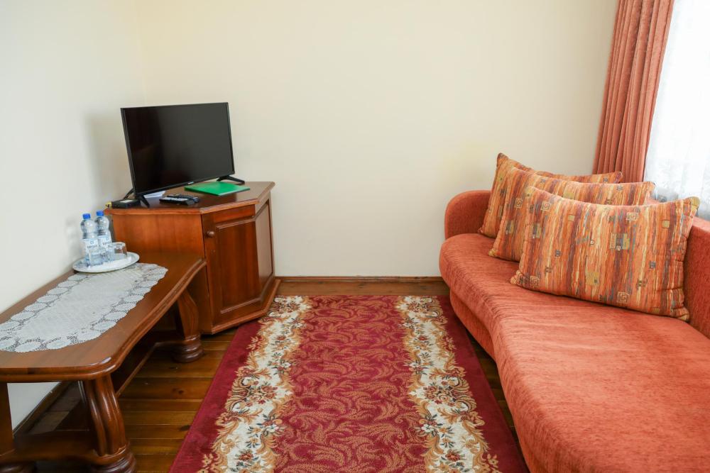 Это уютный двухкомнатный номер, состоящий из гостиной и спальни: одна двуспальная кровать и раскладывающийся диван. Площадь номера 30 кв.м. Вместительность номера - 2 взрослых на основных местах. Возможно размещение до 2 детей от 4 до 18 лет на диване за дополнительную плату - 35,00 белорусских рубля (в стоимость входит предоставление постельного белья и завтрака). В номере: Wi-Fi, телевизор, фен, холодильник, вешалки, зеркало, мебельный гарнитур, электрический чайник, питьевая вода, чай. В ванной комнате: душевая кабина, банные полотенца, косметические средства (шампунь, мыло).