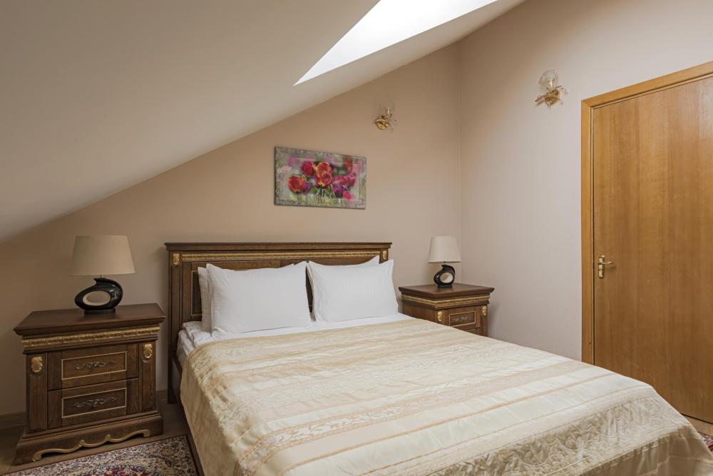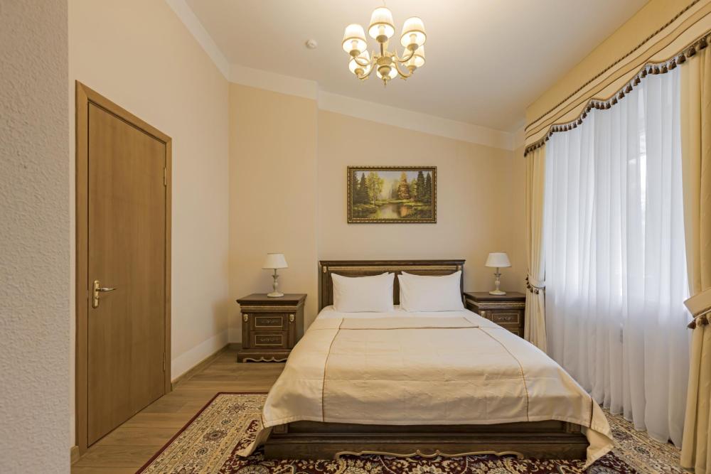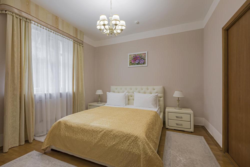 Это комфортабельный четырехкомнатный номер, состоящий из двух спален с двуспальной кроватью (размер 2,0 х 2,0 м), обеденной зоны и гостиной с раскладывающимся диваном в корпусе № 4. Площадь номера 82 кв.м. Вместительность номера - 2 взрослых на основных местах. Возможно размещение до 2 детей от 4 до 18 лет на диване за дополнительную плату - 80,00 белорусских рубля (в стоимость входит предоставление постельного белья и завтрака). В номере: Wi-Fi, телевизор, фен, холодильник, вешалки, зеркало, мебельный гарнитур, электрический чайник, питьевая вода, чай, швейный набор, щетка для одежды, губка для обуви, кондиционер. В ванной комнате: душевая кабина, банные полотенца, косметические средства (шампунь, мыло, гель для душа, зубной набор, шапочка для душа ).