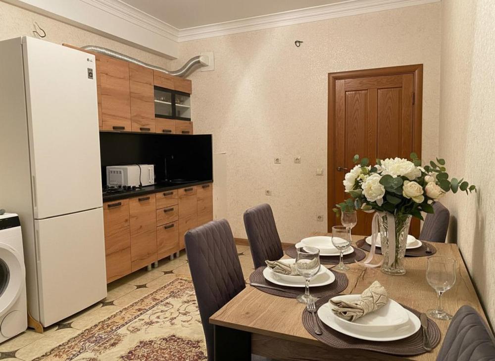 Уютная квартира "евро-двушка" в центре Каспийска в новом ЖК Бизнес класса в хорошо развитом и благоустроенном районе города. Все необходимое в пешей доступности: набережная через дорогу, городской пляж, кафе, рестораны, кинотеатр, городской рынок и автостанция. Двор с хорошей игровой детской площадкой и беседкой. ЗАСЕЛЕНИЕ: - Круглосуточно (ДИСТАНЦИОННО ПО ВИДЕОНАБЛЮДЕНИЮ). - При заселении взимается СТРАХОВОЙ ДЕПОЗИТ в размере суточной стоимости аренды и возвращается в день вашего выезда до 17:00. - ОТЧЕТНЫЕ ДОКУМЕНТЫ для командированных сотрудников, чек. В КВАРТИРЕ есть все необходимое для комфортного проживания 1-4 человек: ● двуспальная кровать (180 см) и раскладной диван; ● оборудованная кухня с газовой плитой, холодильником, микроволновкой и электрическим чайником, необходимая посуда; ● современный телевизор, СМАРТ ТВ, WI-FI; ● кондиционер; ● стиральная машина, сушилка для белья, утюг, гладильная доска. Парковка автомобилей бесплатно у дома (под окнами). РАСПОЛОЖЕНИЕ: Район меет отличную инфраструктуру: В шаговой доступности море и городской пляж , Анжи Арена, супермаркеты, тц, Аквапарк "Аквалэнд", бесплатная парковка перед домом, удобная транспортная развязка. НЕ РАЗМЕЩАЕМ: - граждан без документов - людей в состояние алкогольного и иного опьянения - с животными - для увеселительных мероприятий. Соблюдение закона о тишине! Курение и употребление наркотических средств в апартаментах строго запрещено!