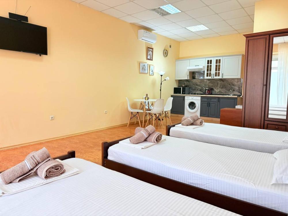Уютная студия с классической отделкой и тёплой атмосферой. — 30 м², подойдёт для семейной пары или компании гостей — 3 раздельные кровати + обеденная зона — Кухня со всей необходимой техникой — Кондиционер, стиральная машина, Wi-Fi, ТВ Расположение: Квартира находится у Махачкалинского порта: — 5 минут до железнодорожного вокзала — 15 минут до моря — Центр города, но в тихом и спокойном районе Подойдёт для тех, кто ищет простое, но функциональное жильё в удобной локации. Заселение бесконтактное.