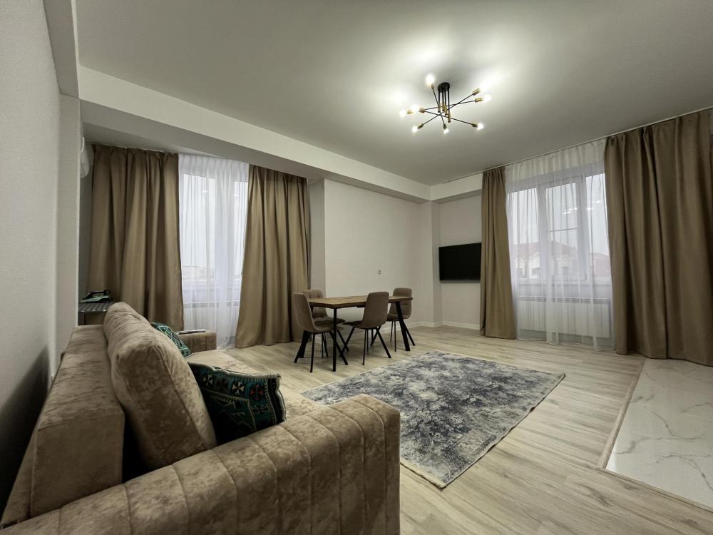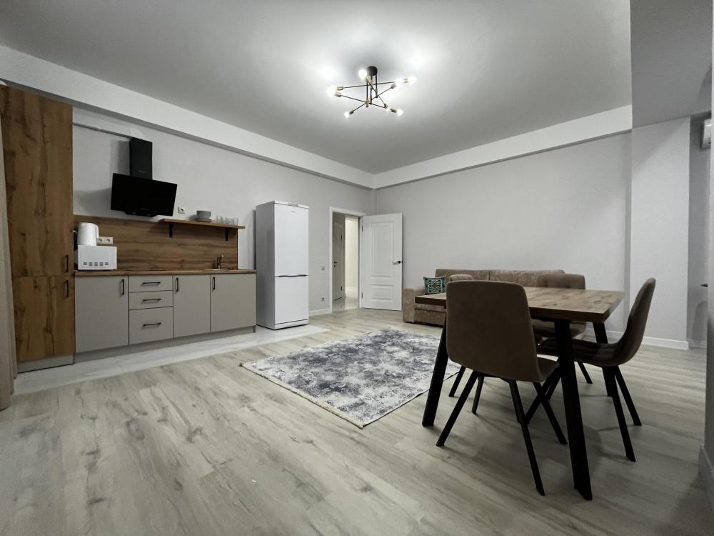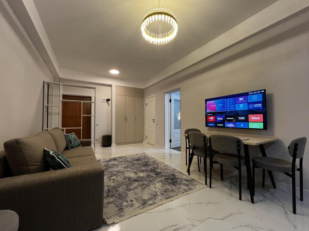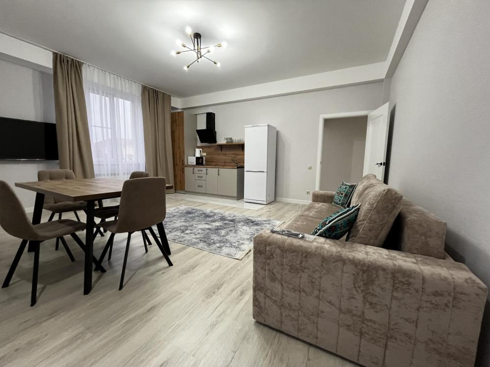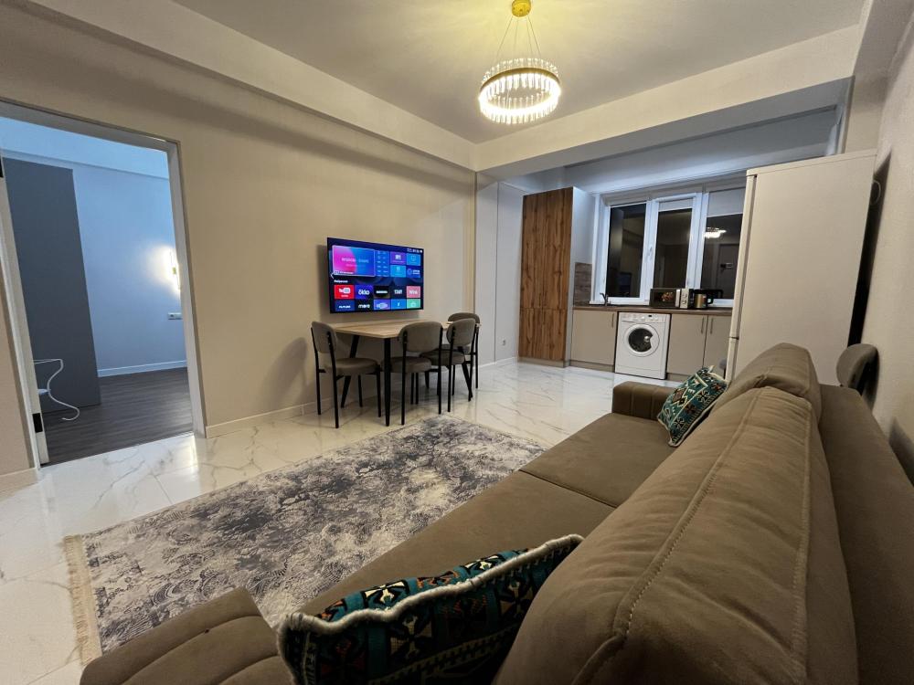 Уютные апартаменты, оснащенные всем необходимым для комфортного проживания. В апартаментах есть полностью оборудованная кухня с широким ассортиментом посуды и бытовой техникой, что позволит вам готовить свои любимые блюда, не выходя из дома. Свежее постельное белье и средства гигиены также гарантированы. В квартире есть отдельный туалет и ванная комната, где вы можете расслабиться после напряженного дня. Помимо этого, вы сможете наслаждаться бесплатным Wi-Fi и смарт-ТВ, чтобы провести время с удовольствием и развлечением.