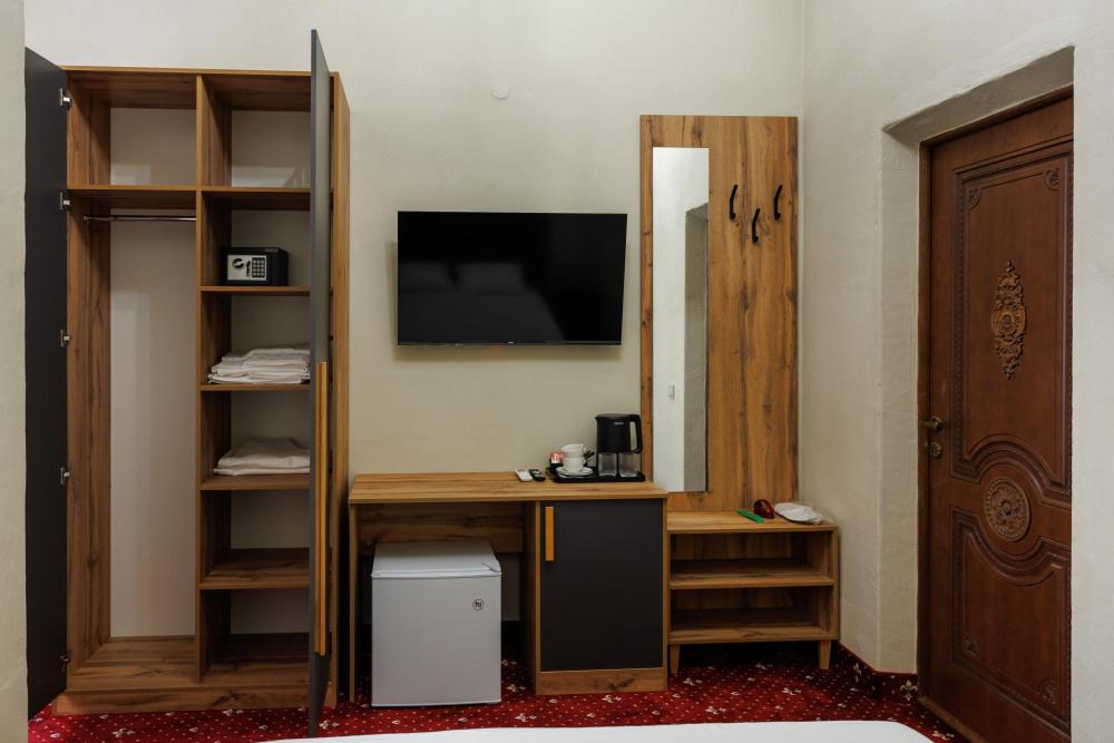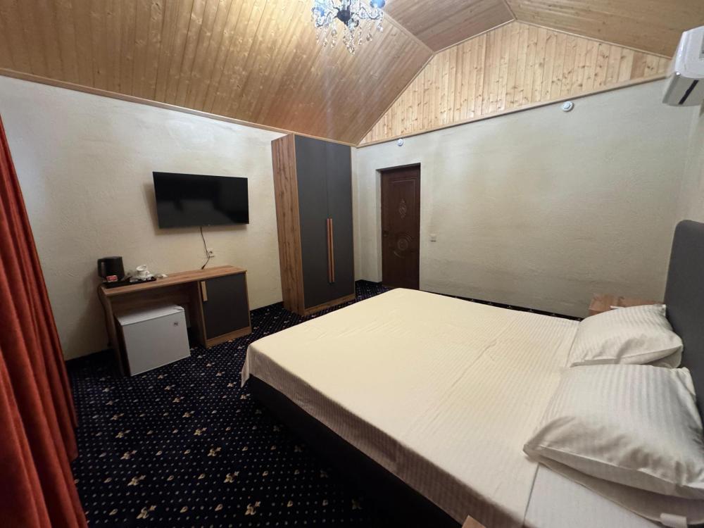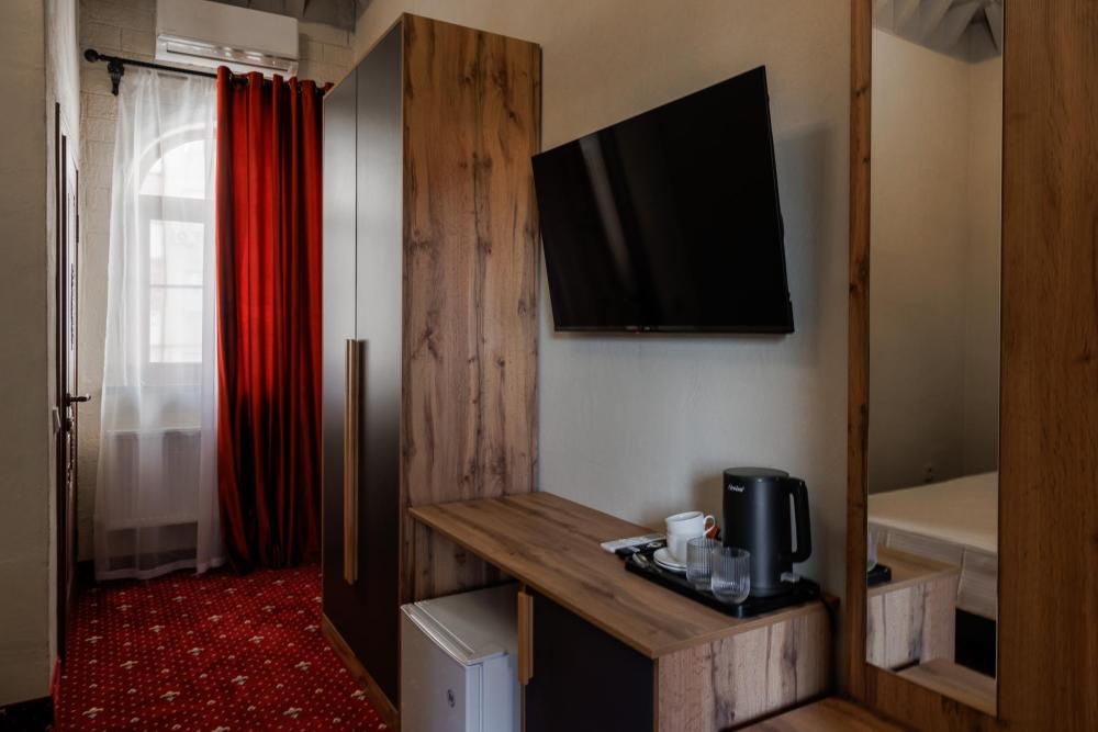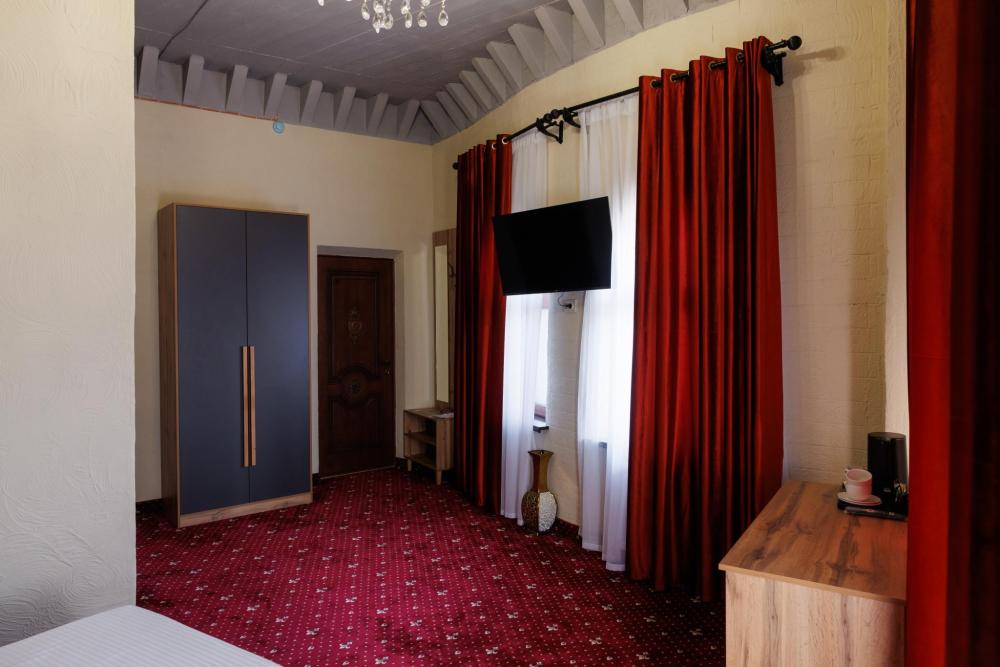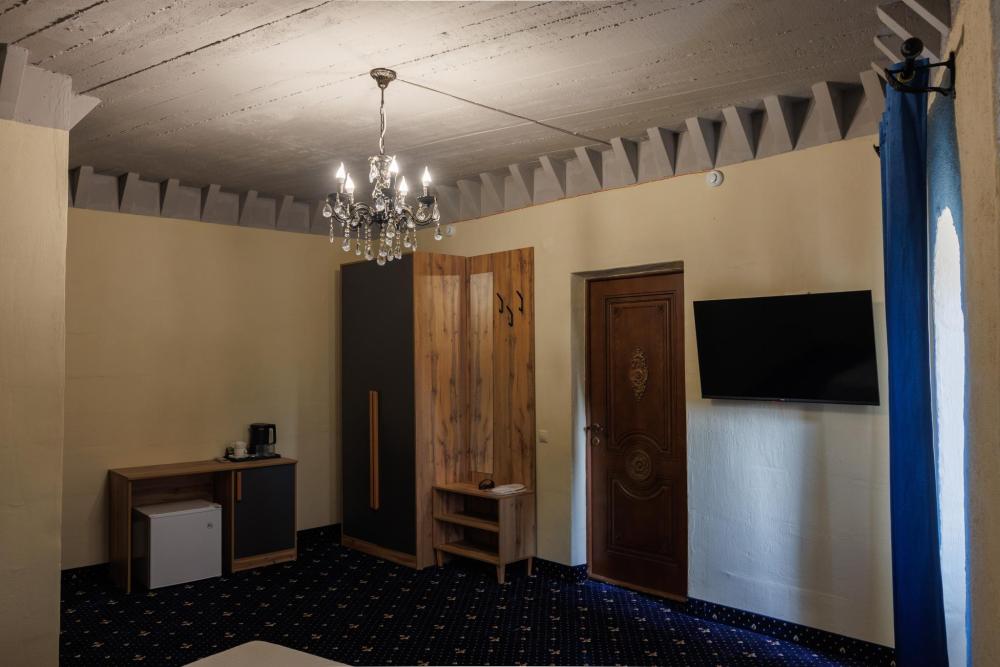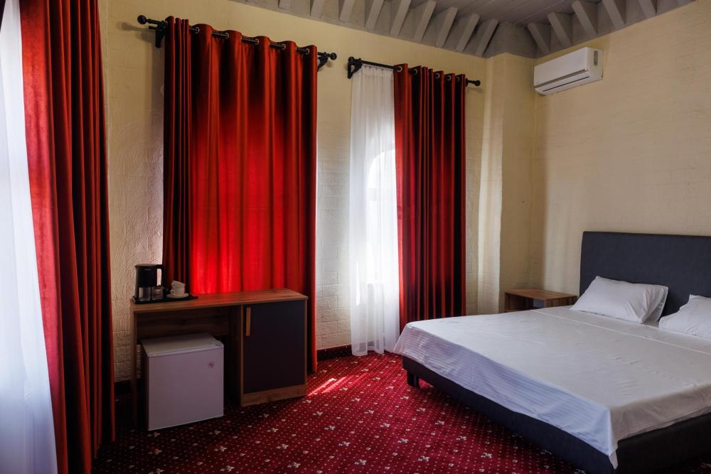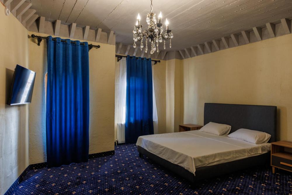 Номер категории “Стандарт” в корпусе "Старый замок". Номер оборудован всем необходимым для комфортного проживания: двуспальная кровать, комплект мебели, телевизор, кондиционер, холодильник, чайная станция, санузел с душем. Гостям предоставляются полотенца, постельное белье, гигиенические принадлежности.