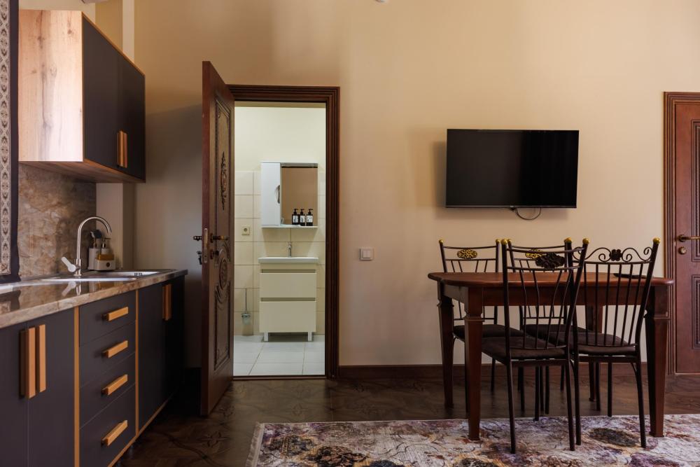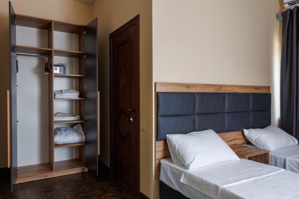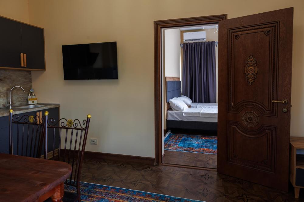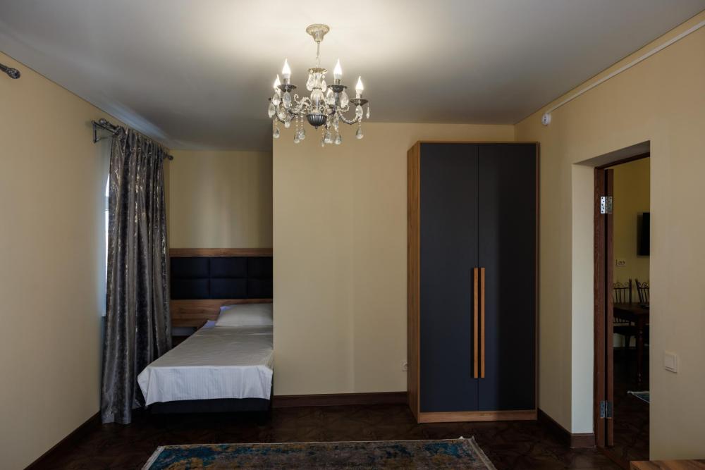 Номер “Двухкомнатный Комфорт” в корпусе "Старый город". Этот номер – идеальный выбор для семей, пар или деловых путешественников, ценящих комфорт, приватность и возможность разделить пространство для работы и отдыха. Номер оборудован всем необходимым для комфортного проживания: двуспальная кровать, комплект мебели, телевизор, кондиционер, холодильник, чайная станция, санузел с душем. Гостям предоставляются полотенца, постельное белье, гигиенические принадлежности.