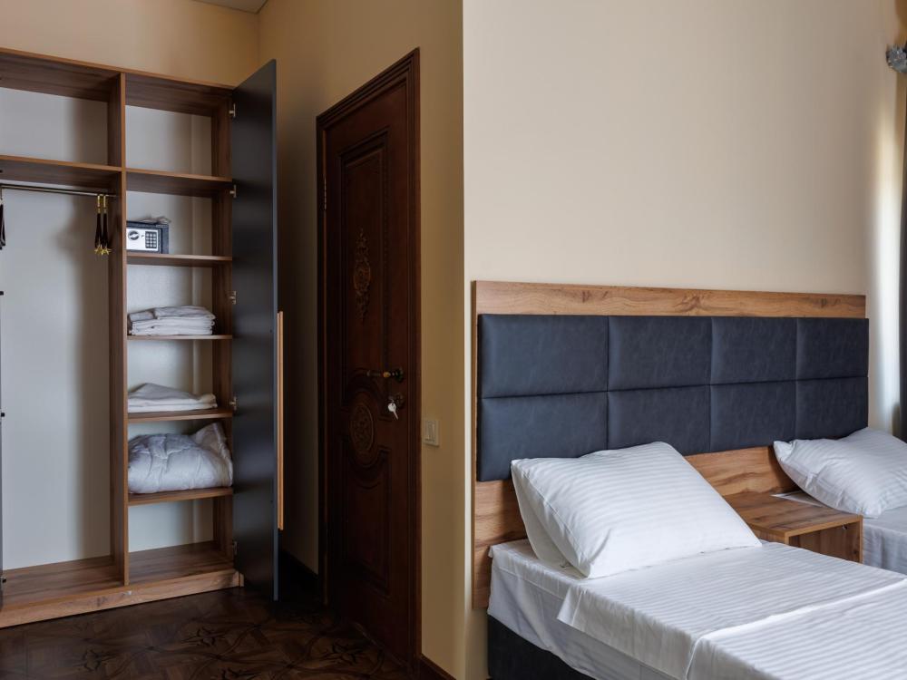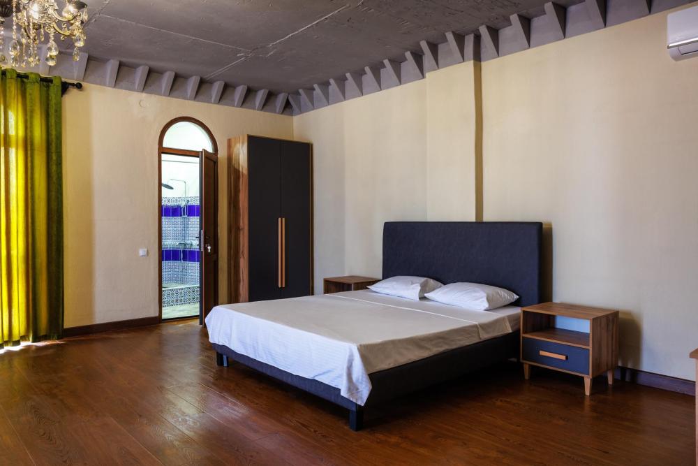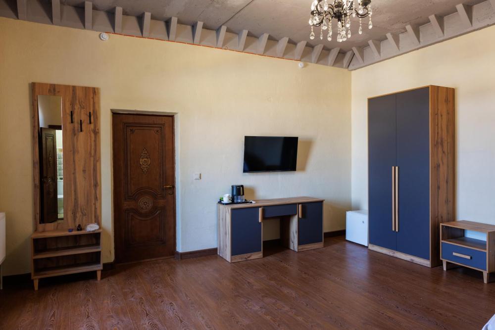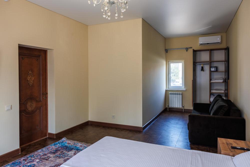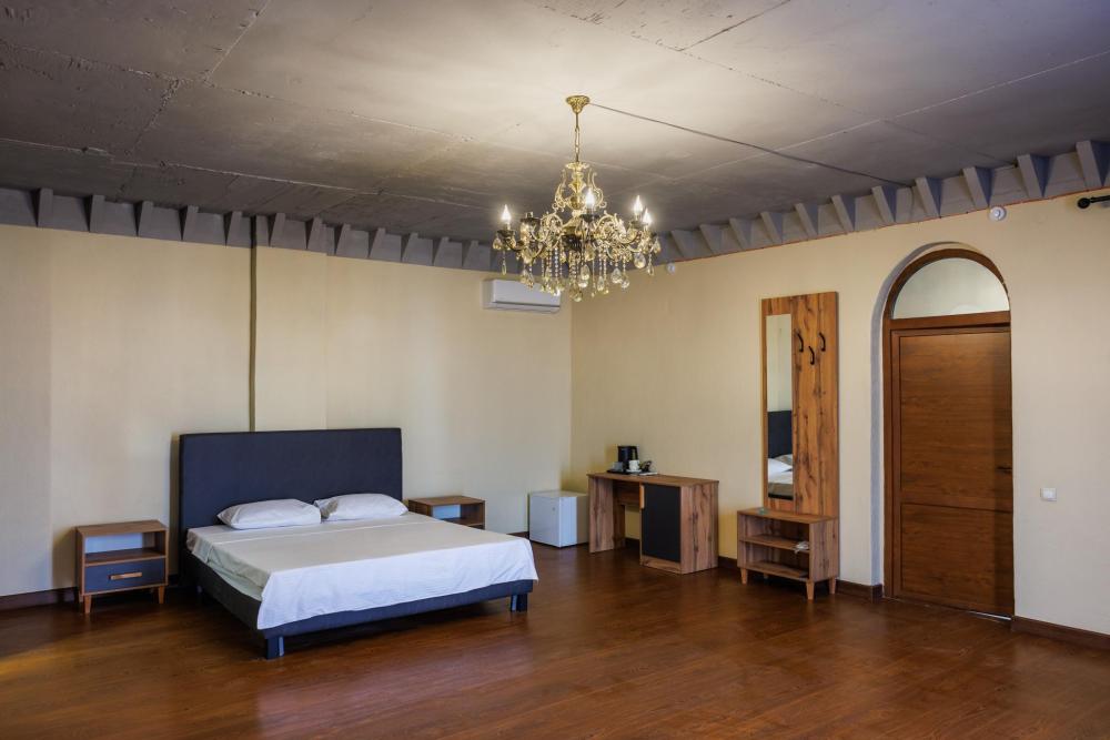 Номер “Делюкс двухкомнатный” в корпусе "Старый замок". Номер оборудован всем необходимым для комфортного проживания: две двуспальные кровати, комплект мебели, телевизор, кондиционер, холодильник, чайная станция, санузел с душем. Гостям предоставляются полотенца, постельное белье, гигиенические принадлежности.