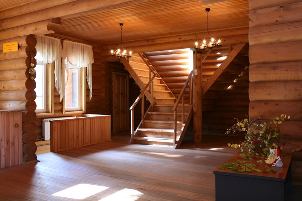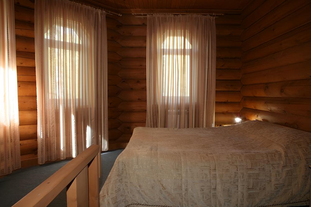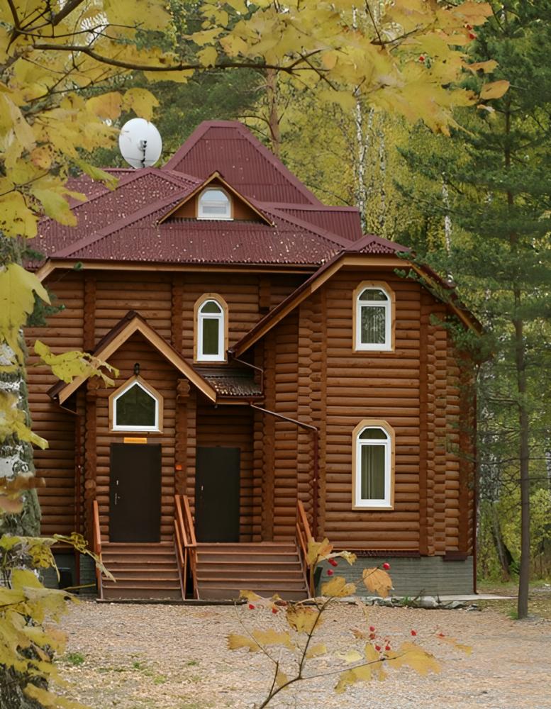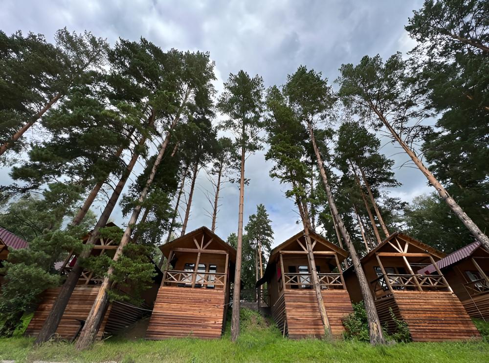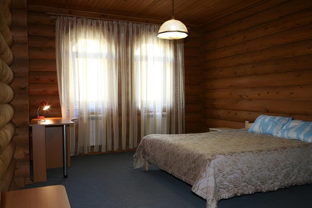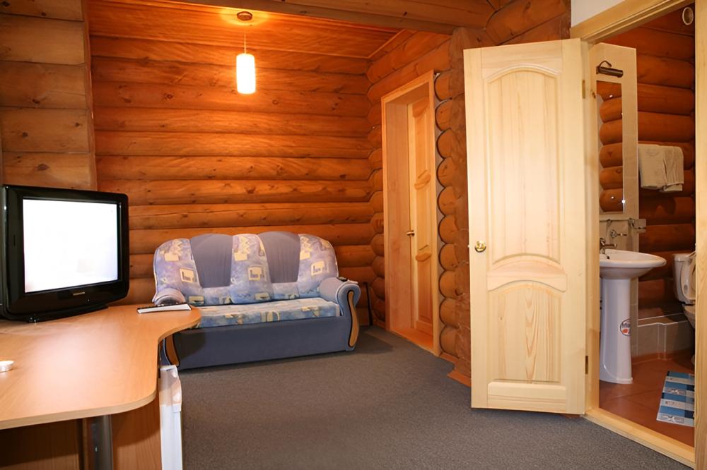 В номере: тумбочки, телевизор, чайник (номера могут отличаться друг от друга своей комплектацией) Санузел: туалет, умывальник, душ Вид корпусов: гостиничный корпус из кедрового бруса.