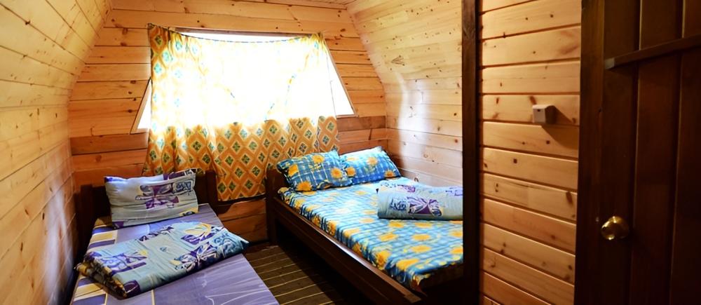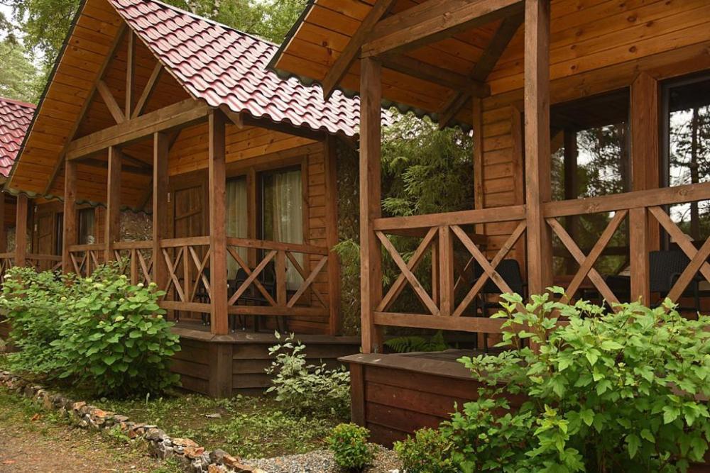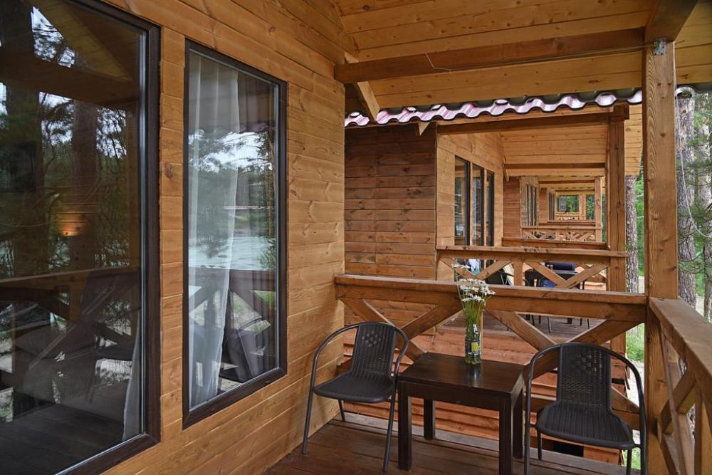 В номере: веранда, комод (номера могут отличаться друг от друга своей комплектацией) Санузел: туалет, умывальник (холодная вода), душевые - на территории (благоустроенные, бесплатно) Вид корпусов: отдельно стоящий домик из полубруса