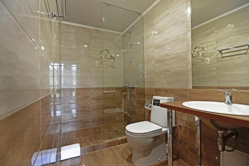 Номер с верандой с видом на территорию. В номере прихожая, шкаф, журнальный столик, стол, стул, телевизор, холодильник. Санузел: туалет, умывальник, душ.