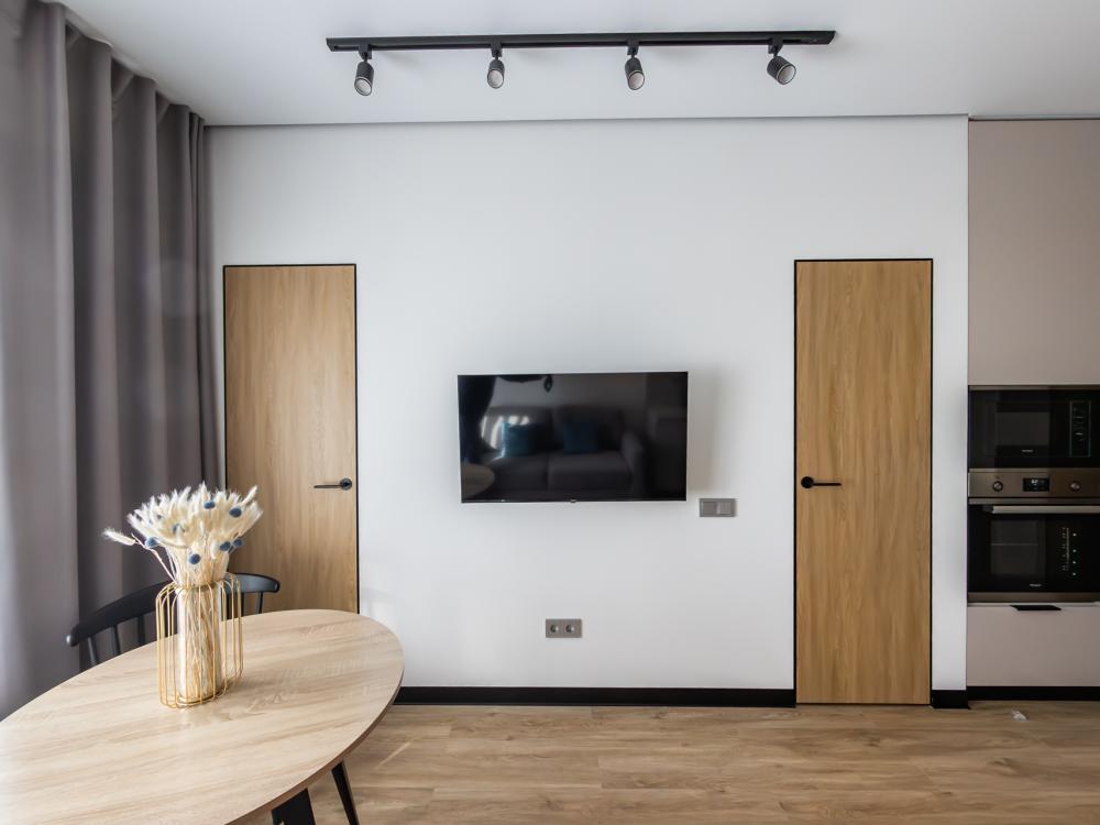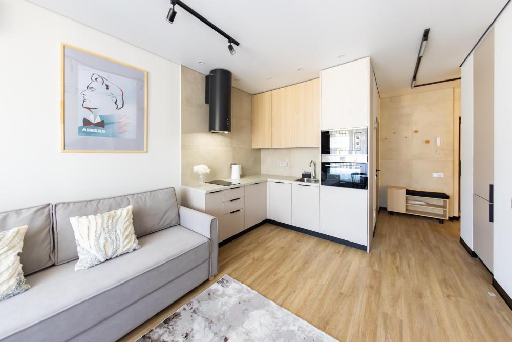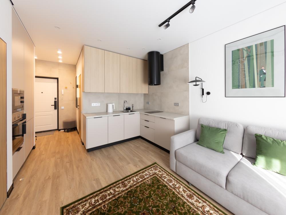 Квартира с кухней-гостиной и отдельной спальней "Леса" вместимостью до 4 человек: с полностью оборудованной кухней и диваном. В спальной комнате широкая двуспальная кровать с ортопедическим матрасом, вместительный гардеробный шкаф. Ванная комната с душевой кабиной и стиральной машиной.