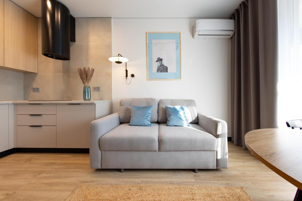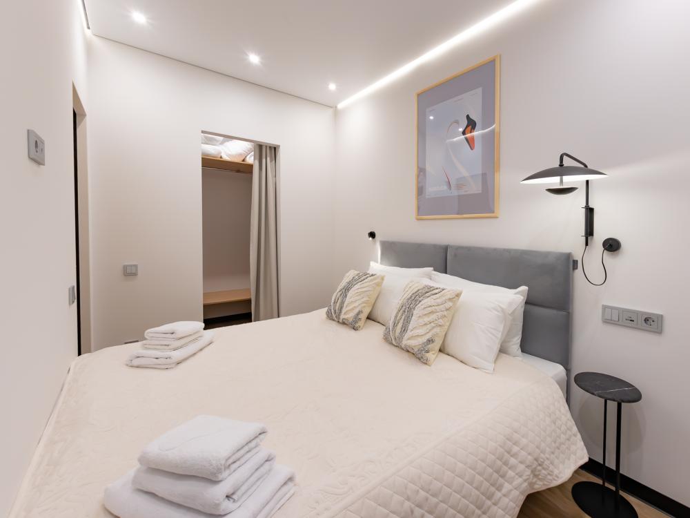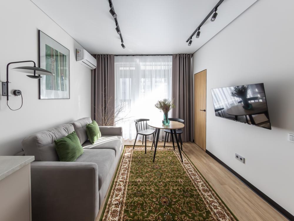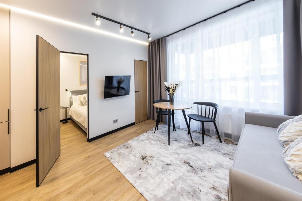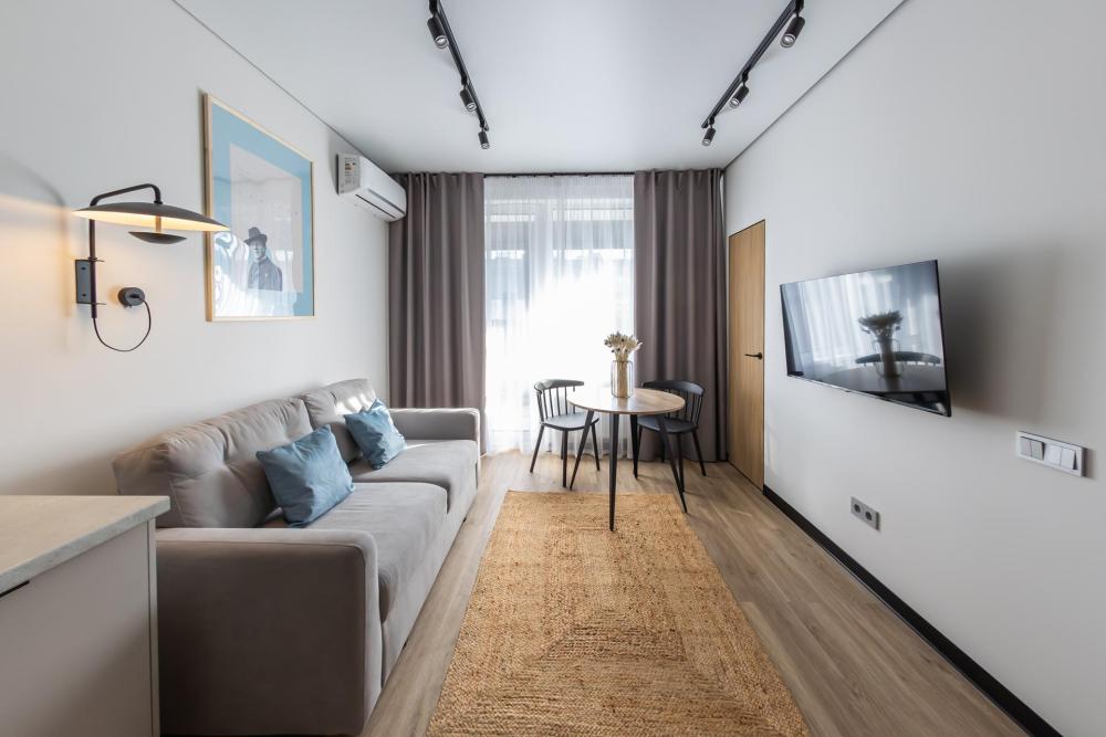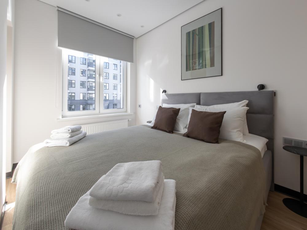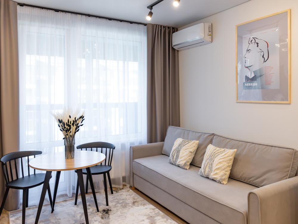 Квартира с кухней-гостиной и отдельной спальней вместимостью до 4 человек: с полностью оборудованной кухней и диваном. В спальной комнате широкая двуспальная кровать с ортопедическим матрасом, вместительный гардеробный шкаф. Ванная комната с душевой кабиной и стиральной машиной.