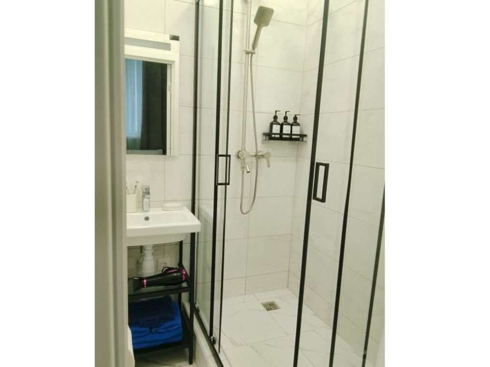 Уютные апартаменты, оборудованные всем необходимым для комфортного проживания. Для отдыха в квартире предусмотрены: двуспальная кровать с ортопедическим матрасом, чистое глаженное постельное белье, шторы блэкаут. В кухонной зоне: индукционная плита, холодильник, микроволновая печь, вытяжка, электрический чайник, комплект посуды, кухонные принадлежности, чай, сахар, соль. Wi-FI, телевизор, кондиционер сплит-система. Душевая комната с феном, полотенцами и гигиеническими принадлежностями (гель для душа, жидкое мыло, шампунь, кондиционер). В наличии стиральная машина, гель для стирки, сушилка, гладильная доска и утюг.