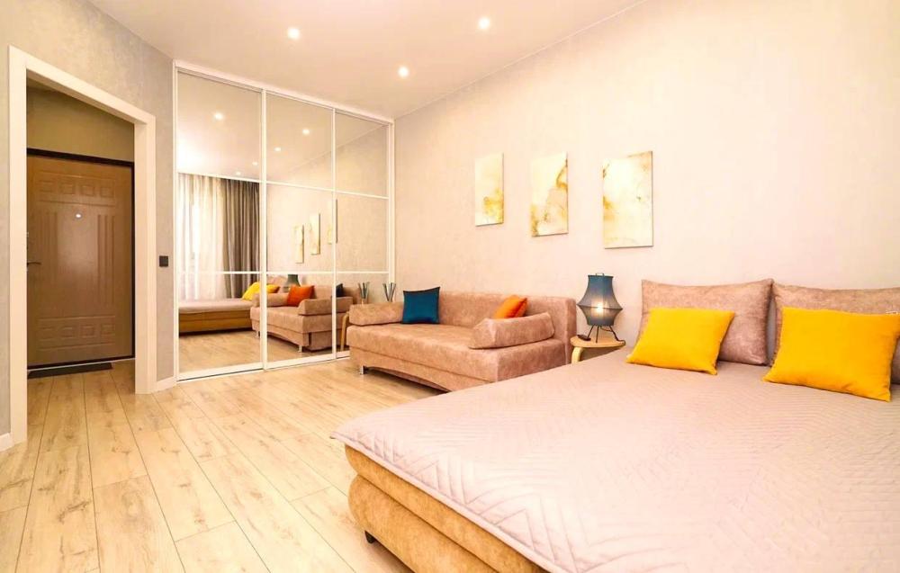 В квартире есть все необходимое для проживания: бытовая техника, мебель, кухонные принадлежности. В шаговой доступности продуктовые магазины, аптеки, салоны красоты