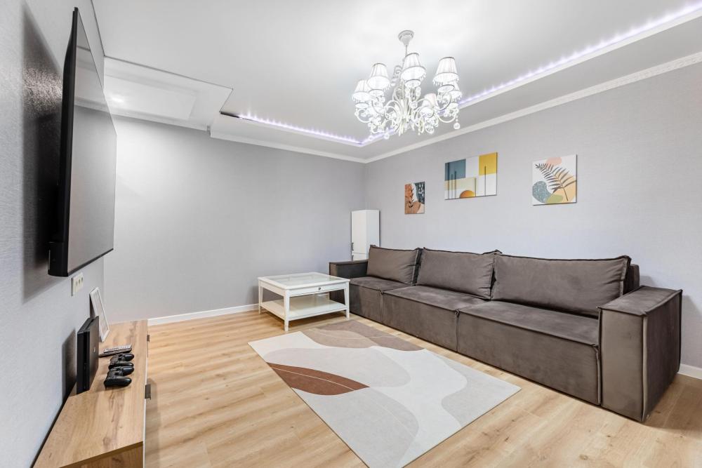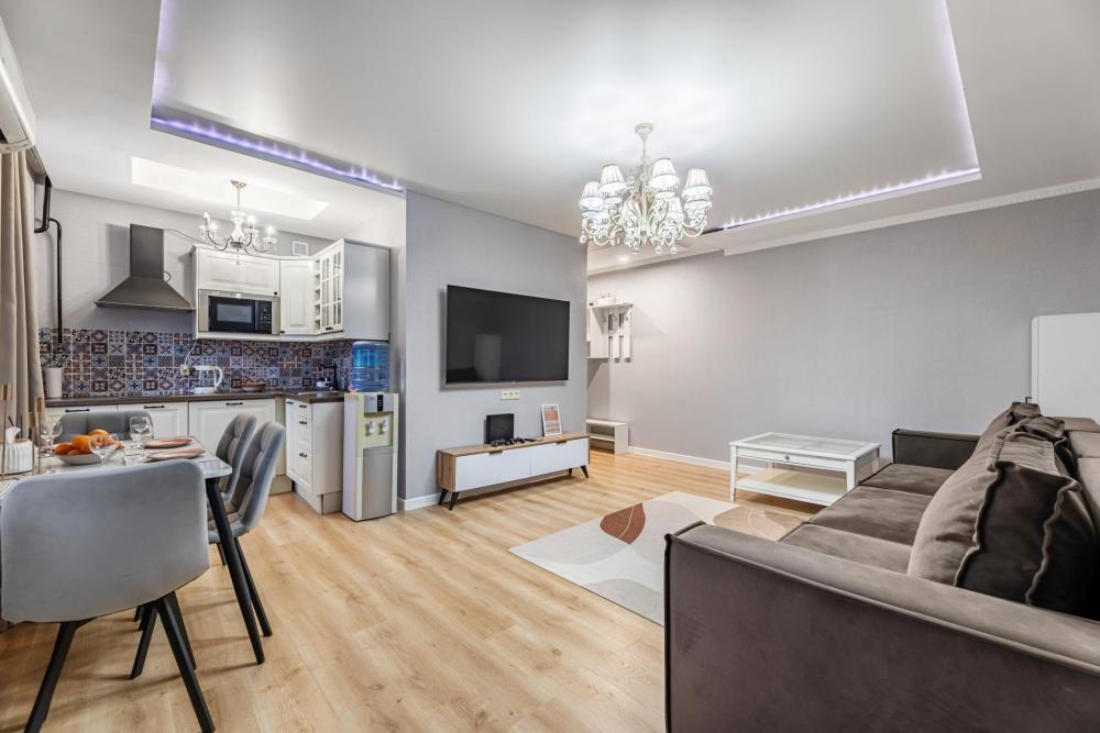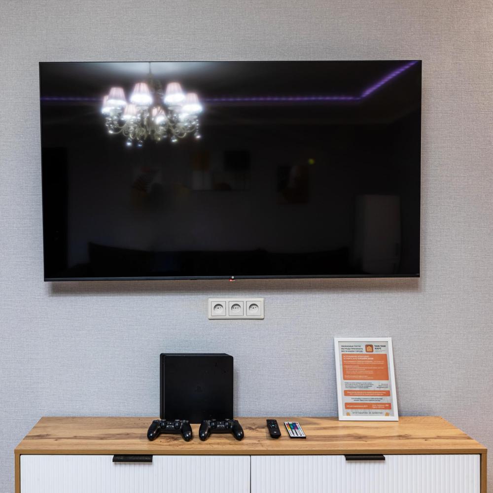 Уютные однокомнатные апартаменты. Квартира оборудована всей необходимой бытовой техникой, двуспальной кроватью, Smart TV. Бесплатно при заселении предоставляется 1 комплект постельного белья, душевые наборы для каждого гостя, а также полотенца. Также для удобства предоставляются: бытовая техника, чайник, телевизор, стиральная машина, посуда, столовые приборы.
