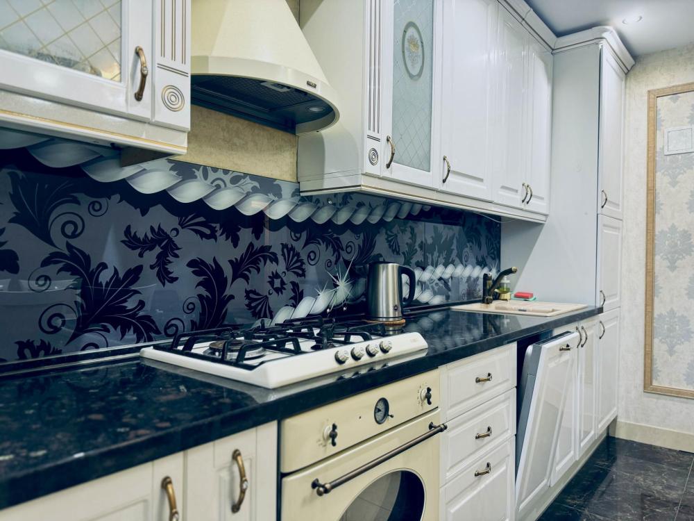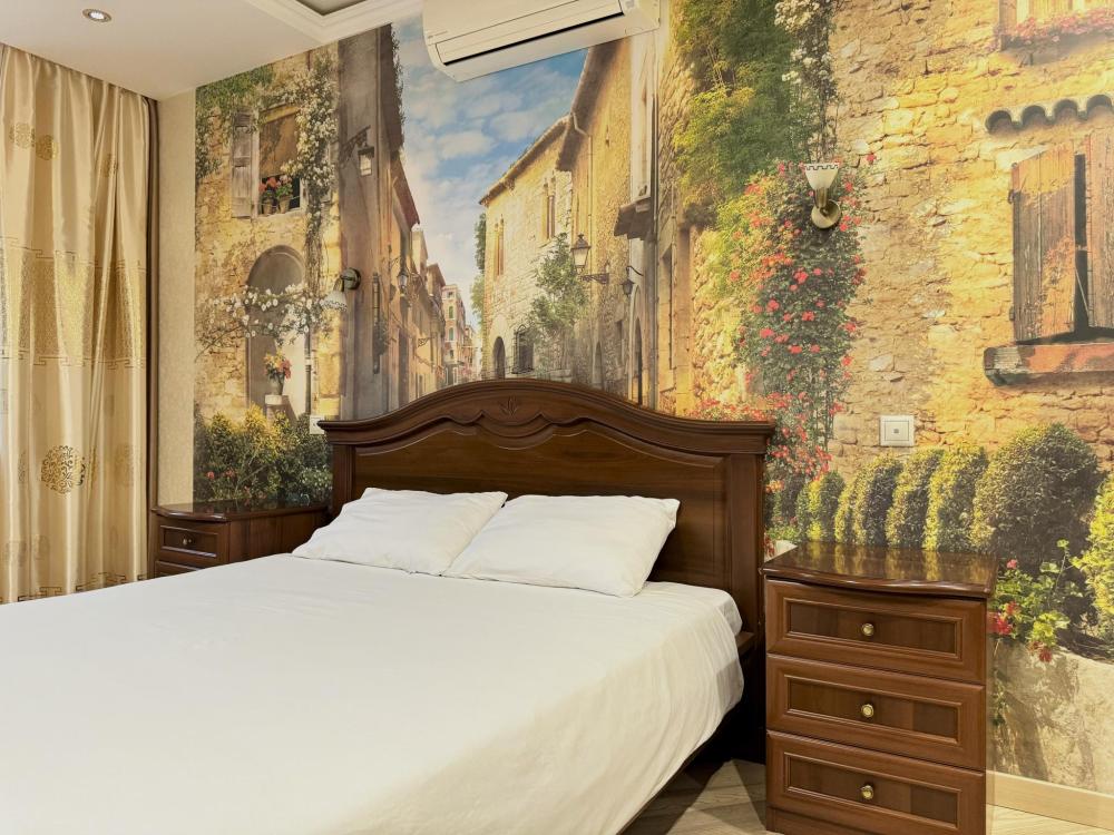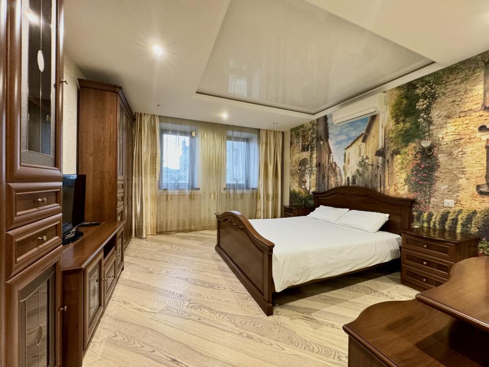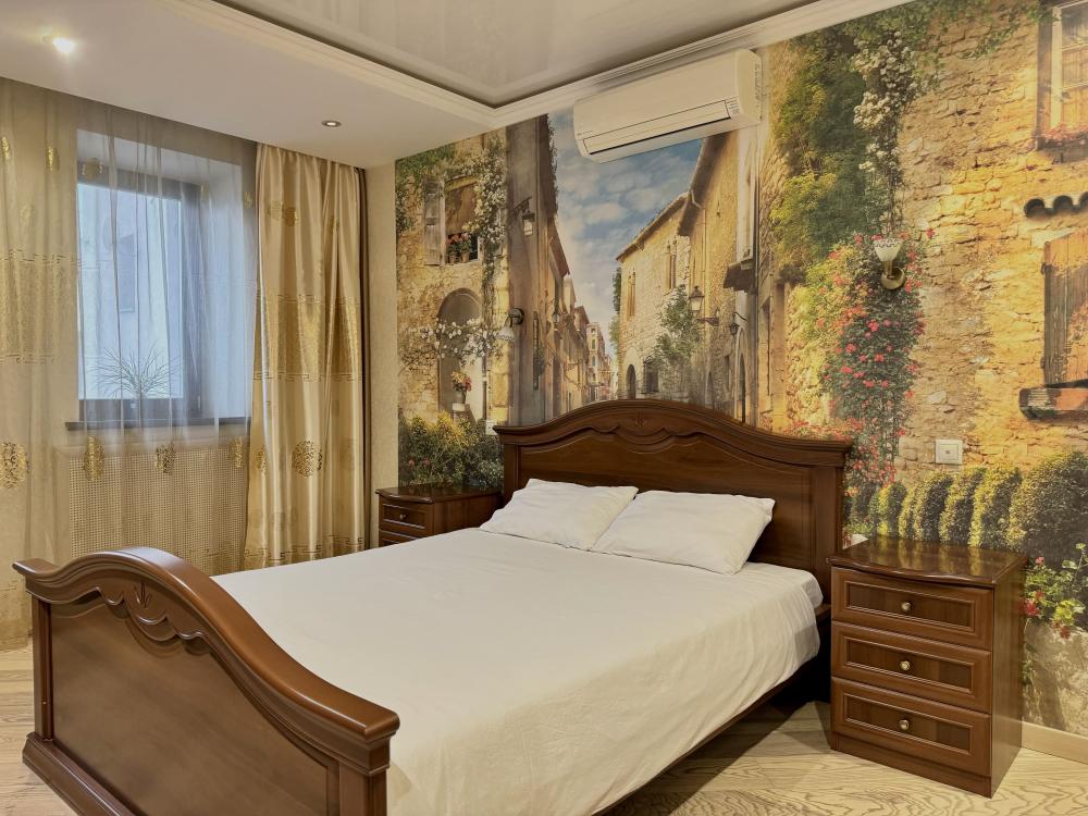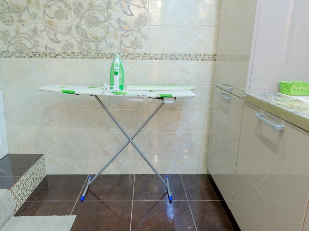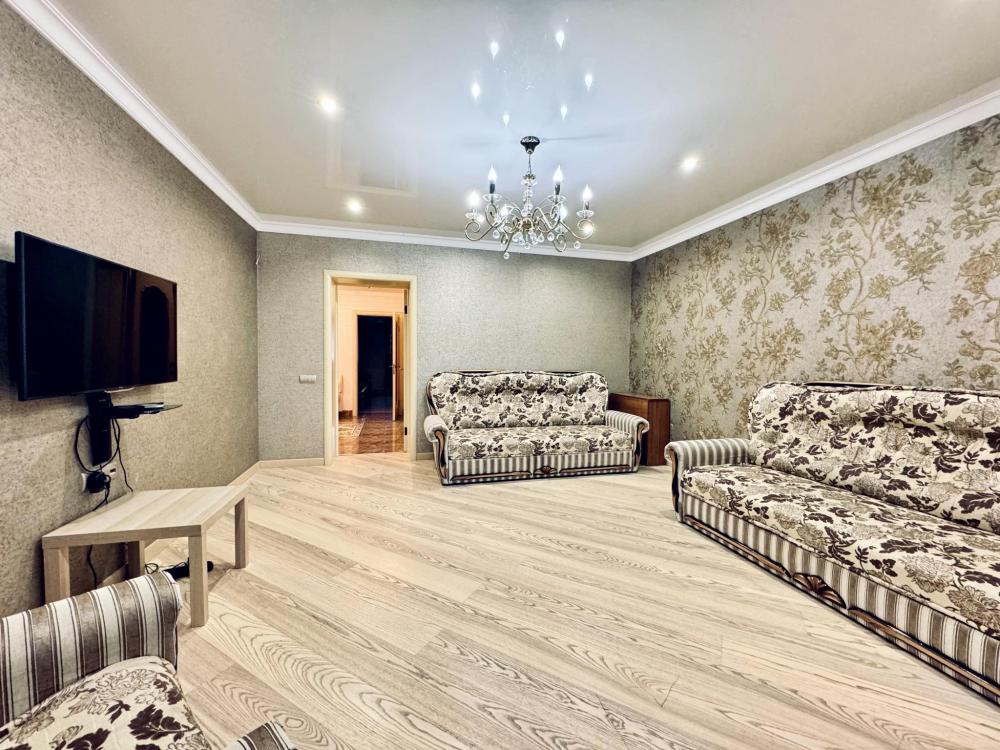 Двухкомнатные апартаменты для 6 гостей. Спальные места: 2 дивана и двуспальная кровать. В квартире есть: ТV в каждой комнате с цифровыми каналами, кондиционер. Большая кухня с качественной бытовой техникой: 2 Холодильника (основной и барный), стол, посудомоечная и стиральная машины, фен, утюг, гладильная доска, сушилка для одежды. Гостям предоставляются шампунь, гель для душа, зубной набор , жидкое мыло, чай.