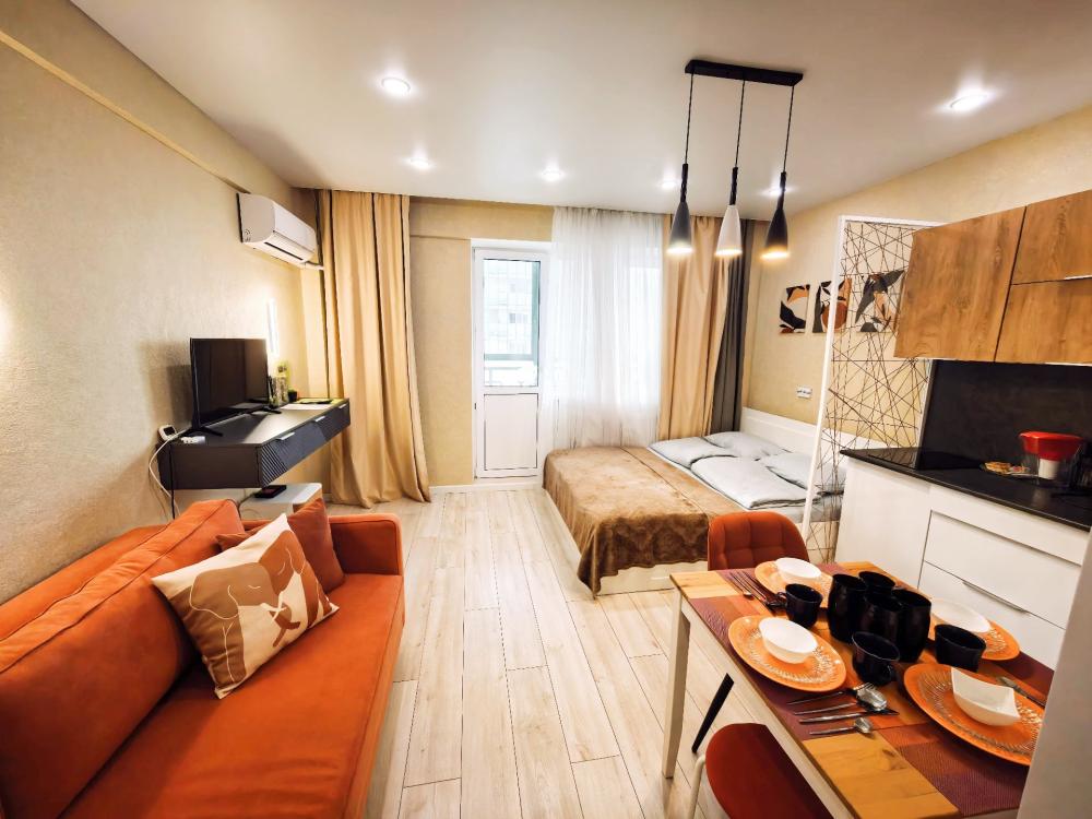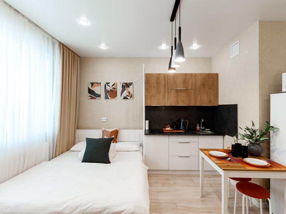 Дизайнерская квартира в современном жилом комплексе GREEN CITY рядом с Советской площадью. Уникальная квартира рядом с АРТ сити, Русско-Немецкой Швейцарией, КНИТУ, РЖД Предлагаем вам стильную студию с великолепным панорамным видом на Казанку, Казань-Арену. Прекрасное место для комфортного проживания в удобном месте Преимущества: современный дизайн: Элегантный дизайнерский ремонт. Безопасность и комфорт: Огороженная территория с шлагбаумом и камерами видеонаблюдения, а также детская площадка для ваших детей. Бесконтактное заселение: Возможность самостоятельного заселения в любое время суток. Полное оснащение: Студия оборудована всем необходимым для комфортного проживания: кондиционер, широкая двуспальная кровать (160х200) с ортопедическим матрасом и раскладывающийся диван, шкаф для одежды и прихожая с вешалкой, уютная лоджия с панорамными окнами и потрясающим видом на город. Функциональная кухня: холодильник, СВЧ-печь, электрическая плита, чайник и комплект посуды, водонагреватель, телевизор и высокоскоростной Wi-Fi. Гигиена и комфорт: средства гигиены, постельное белье, комплект полотенец. Дезинфицирующая уборка перед каждым заселением с использованием гипоаллергенных средств.