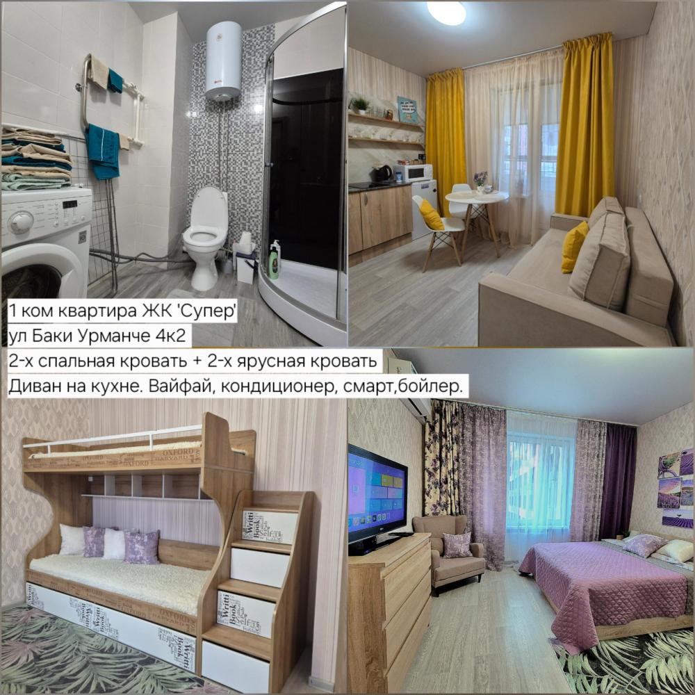 Квартира однокомнатная с большой кроватью в комнате шириной 1.4?и большим раскладным диваном шириной 1.4 ?, также в дополнении односпальная раскладная кровать 80*200, сдаётся посуточно со всем необходимым для комфортного проживания 4+1 человек: