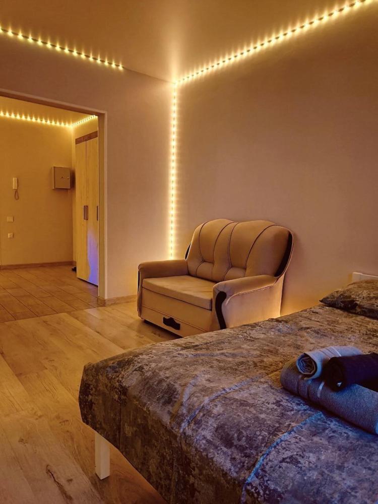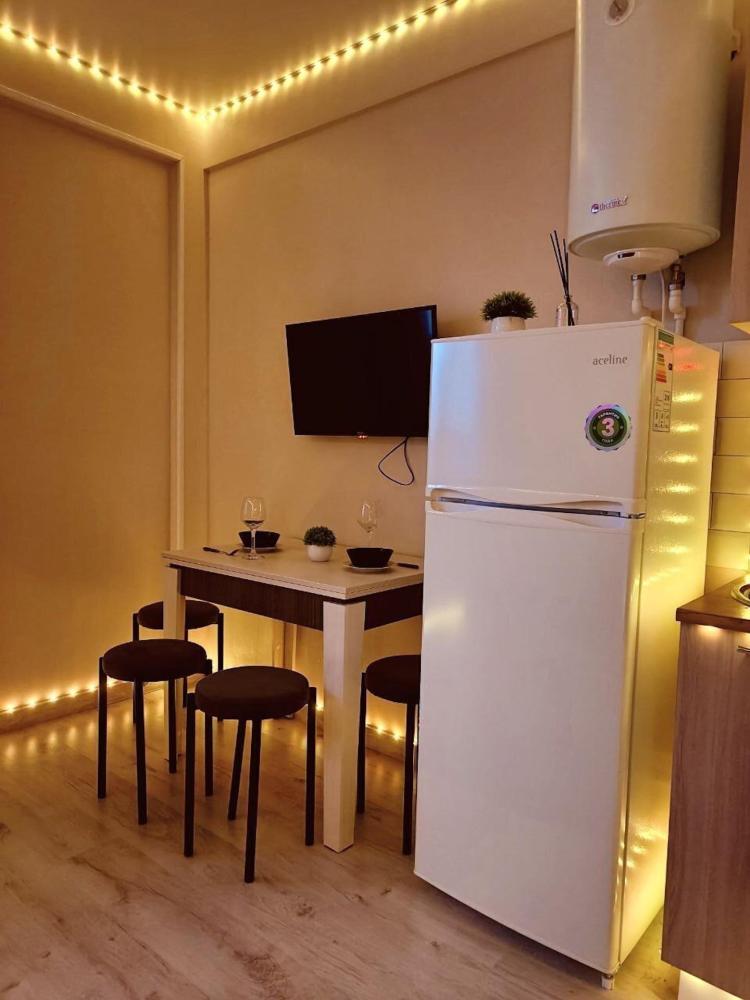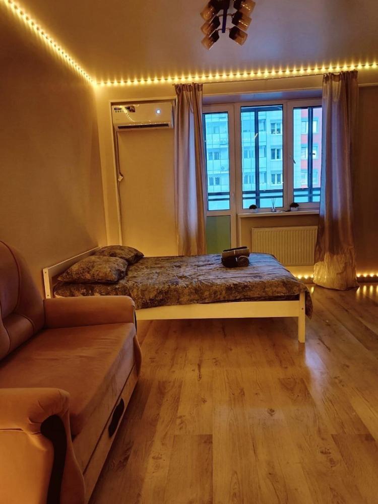 Студия в центре города. Очень компактная, хорошо подойдёт для отдыха на двоих, семейной поездки, командировки. Большая кровать с новым, мягким матрасом, в дополнении имеется диван на 2 спальных мест. Может разместиться до 4 взрослых человек (Не считая детей). Порадует вас: Кондиционером Бокалами для вина и штопором Одноразовыми зубными щётками Феном, утюгом Бесплатным Wi-Fi Смарт ТВ 32 дюйма Чистыми постельным бельем и полотенцами Полным набором кухонного инвентаря Для наибольшего уюта по всему периметру квартиры расположена светодиодная подсветка. Подойдет для романтической обстановки или приятного вечера в кругу семьи