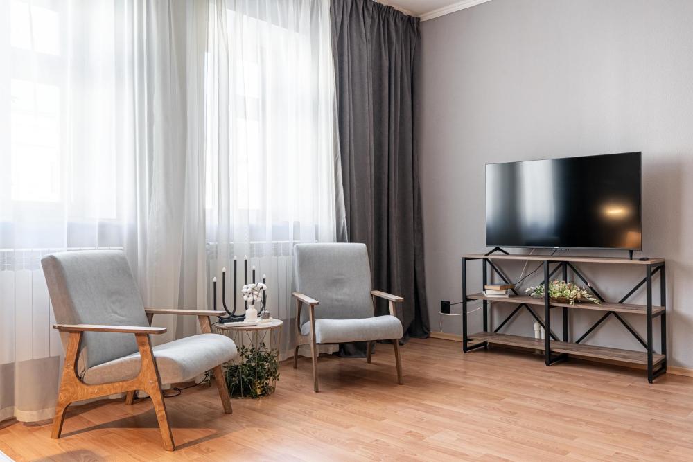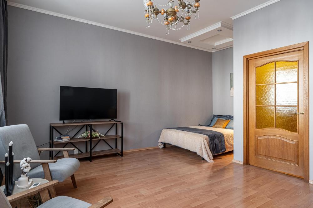 Двухкомнатные апартаменты в сердце Казани. Две отдельные комнаты с двуспальными кроватями, в кухне гостиной - раскладной диван (двухспальный). Смарт Тв, кухня оборудована всем необходимым для комфортного пребывания- варочная плита, духовой шкаф, СВЧ, электрический чайник, кофемашина с зерновым кофе, посуда для приготовления и столовые приборы.