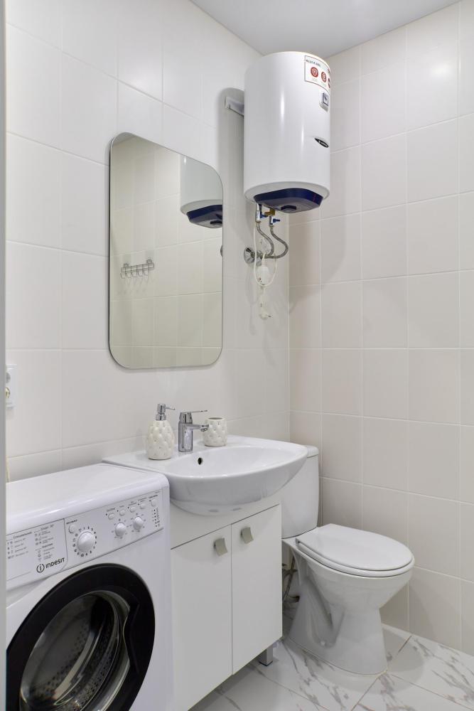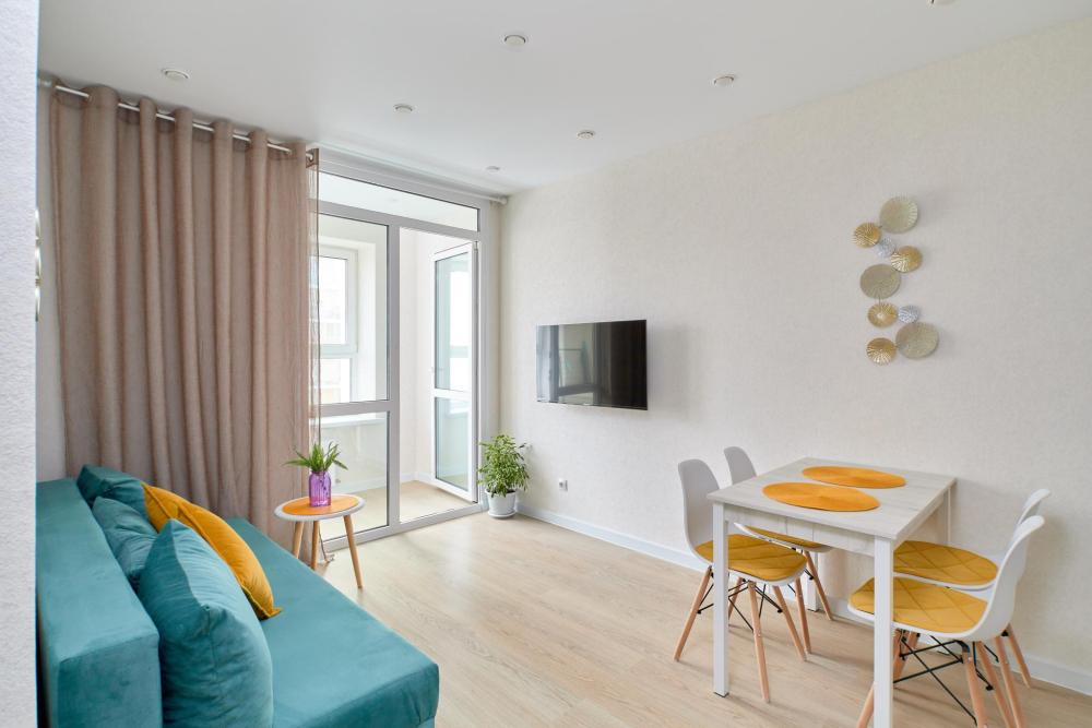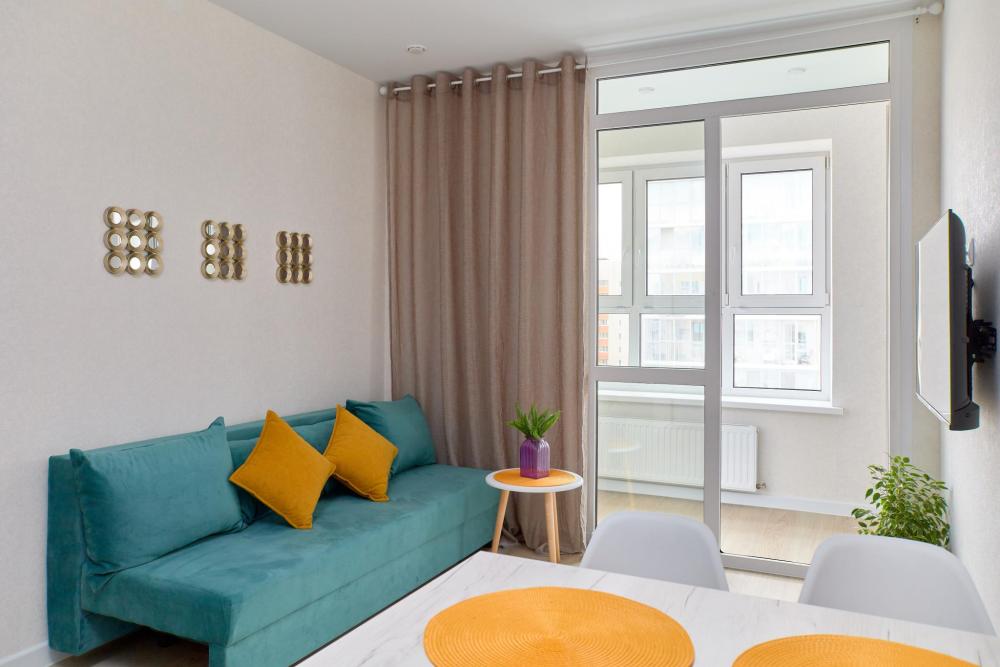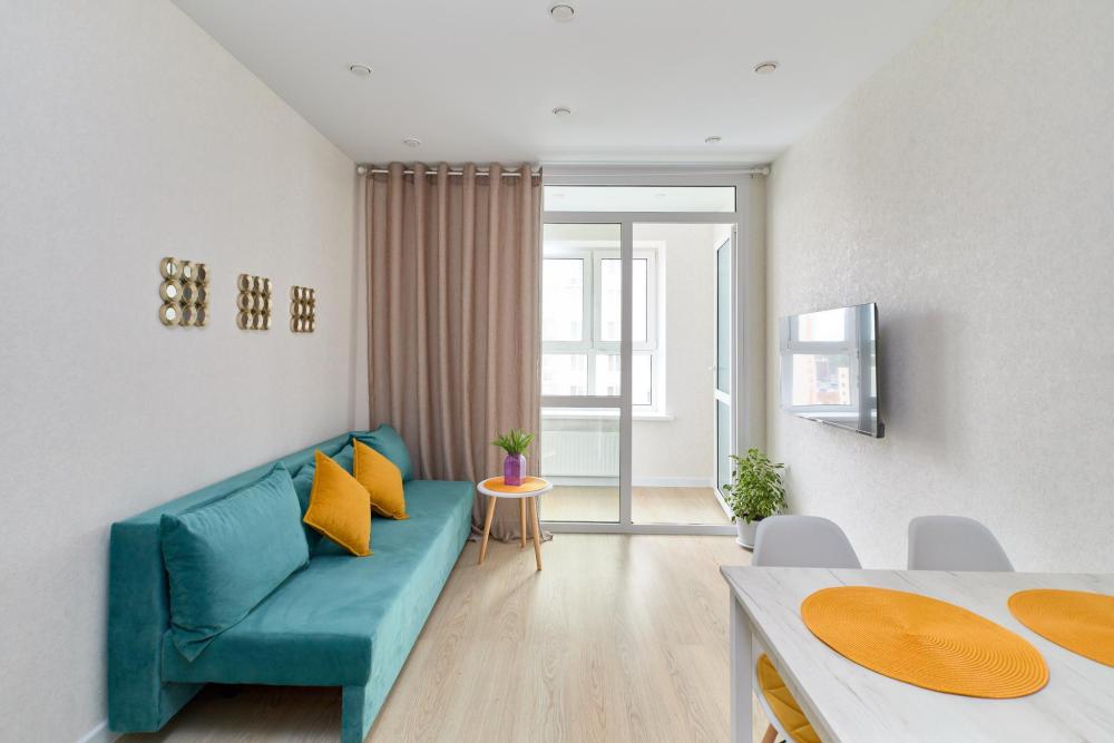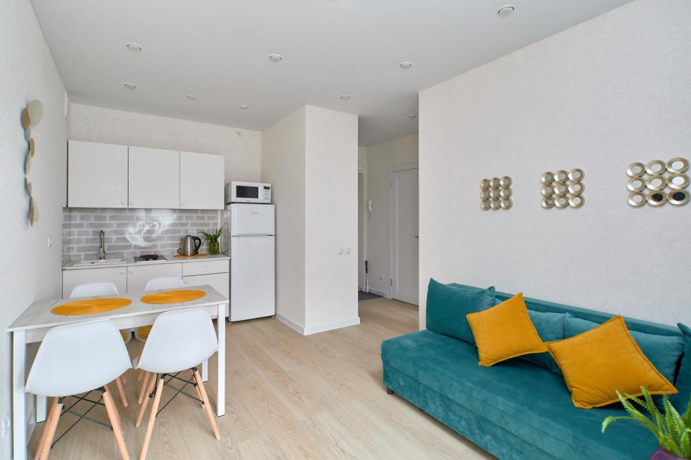 В квартире есть 4 спальных места: 2х спальная кровать и 2х местный диван. Также здесь есть постельное белье и полотенца для каждого гостя. Не стоит беспокоиться о гигиенических средствах и фене — все это уже есть в квартире. На кухне есть все необходимое для приготовления пищи: кухонный гарнитур, посуда, микроволновка, варочная панель и холодильник.