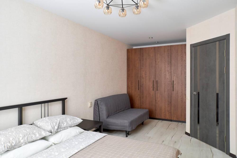 В квартире есть 4 спальных места: 2х спальная кровать и 2х местный диван. Также здесь есть постельное белье и полотенца для каждого гостя. Не стоит беспокоиться о гигиенических средствах и фене — все это уже есть в квартире. На кухне есть все необходимое для приготовления пищи: кухонный гарнитур, посуда, микроволновка, варочная панель и холодильник. К тому же, здесь есть водонагреватель и стиральная машина — в случае необходимости возможно воспользоваться.