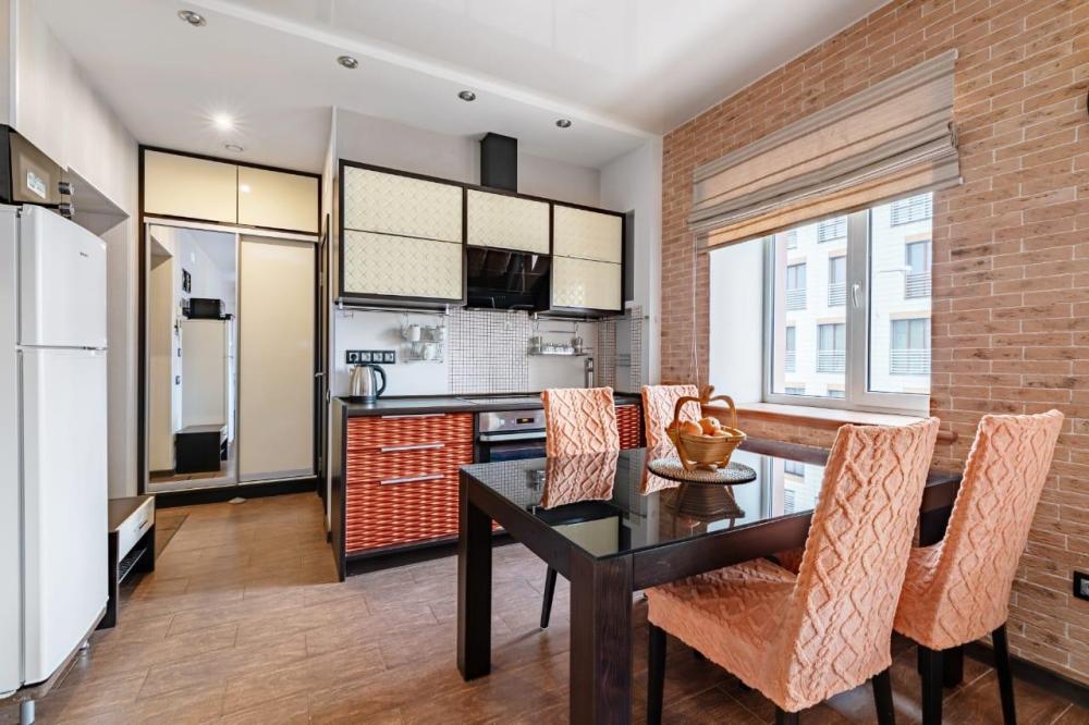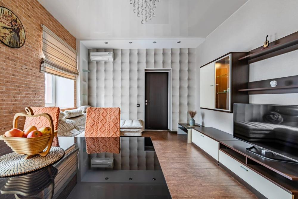Апартаменты оборудованы необходимой мебелью, посудой и техникой: телевизор, кондиционер, холодильник, стиральная машина, электрическая плита. К услугам гостей также бесплатный wi-fi, парковка во дворе дома.