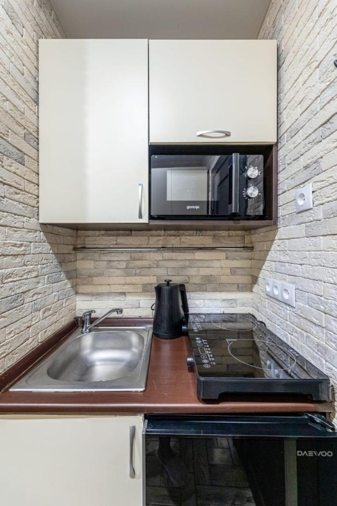 Апартаменты оборудованы необходимой мебелью, посудой и техникой: телевизор, кондиционер, холодильник, стиральная машина, электрическая плита. К услугам гостей также бесплатный wi-fi, парковка во дворе дома.