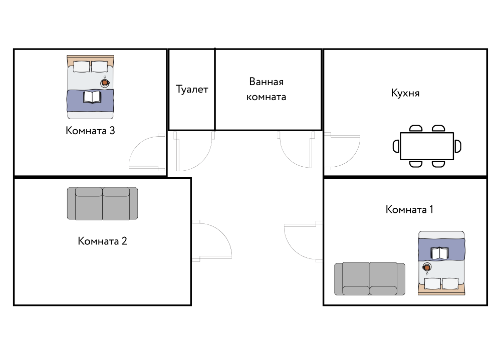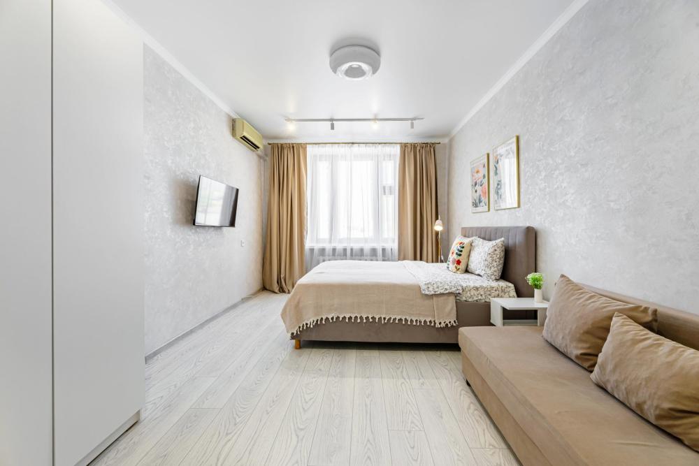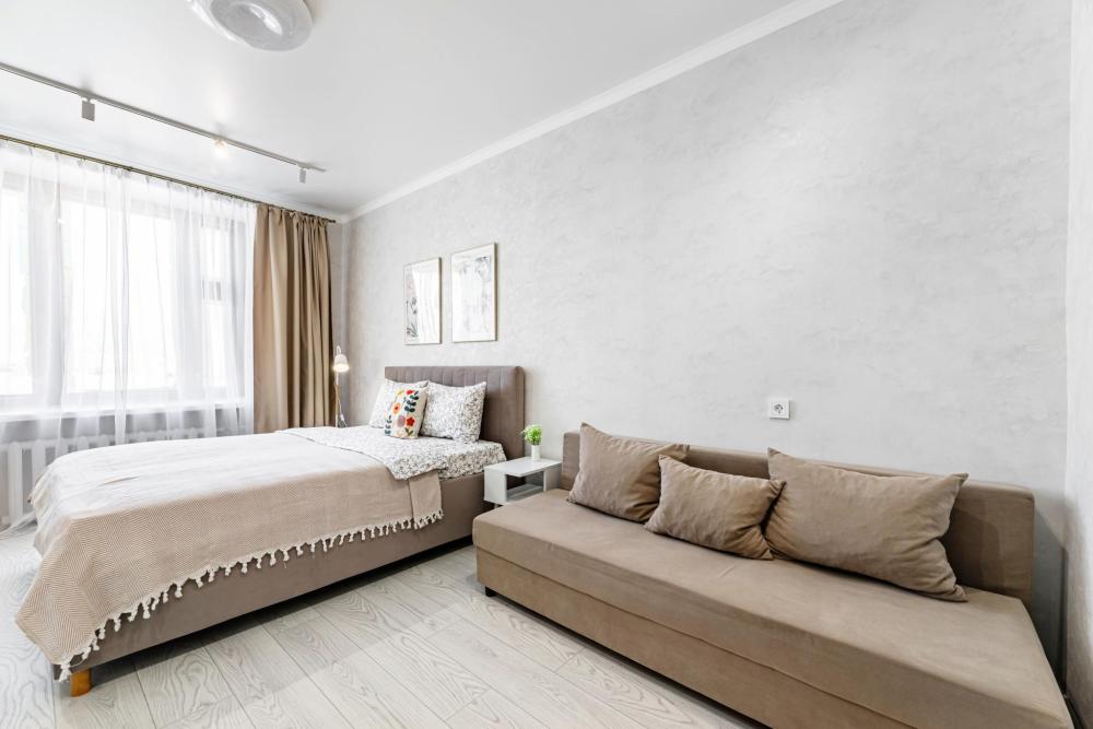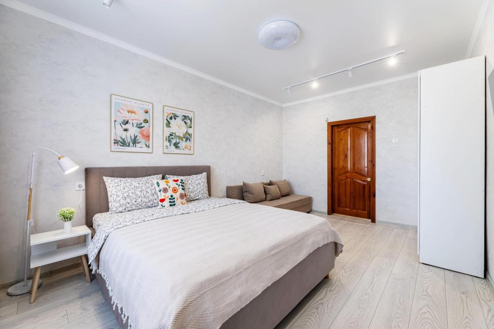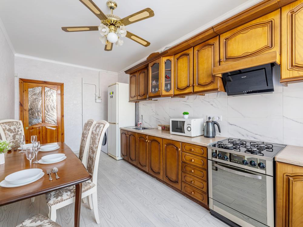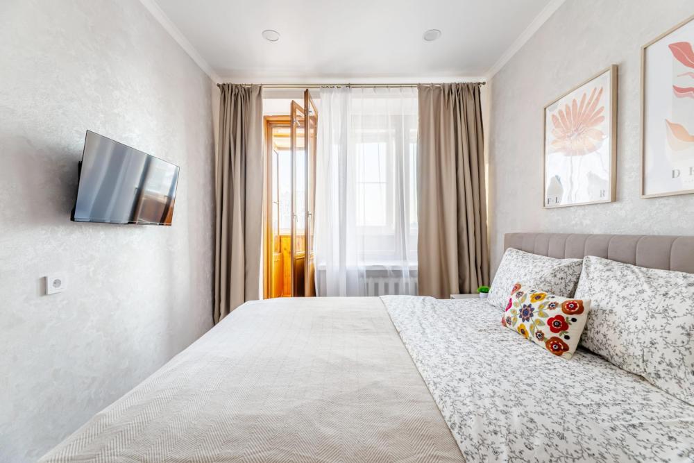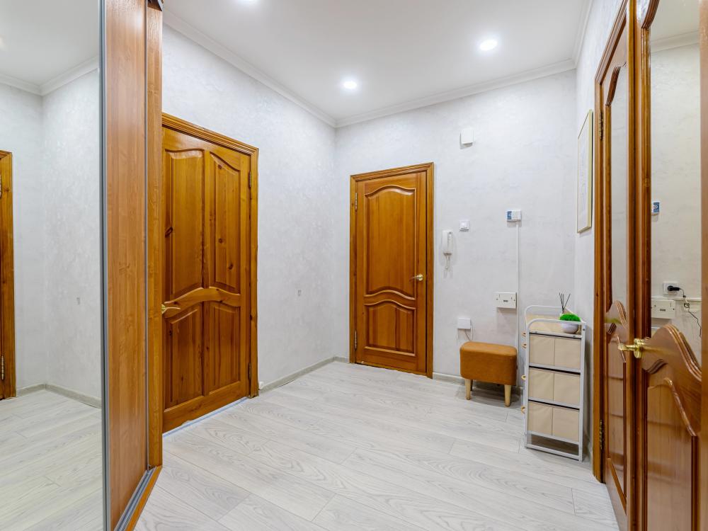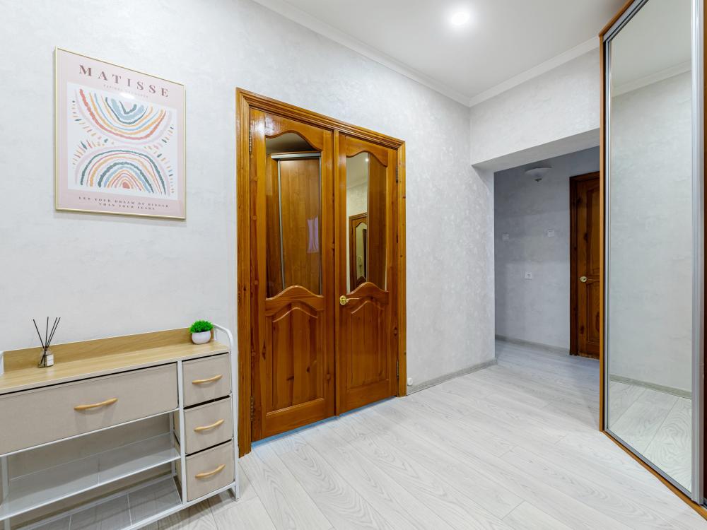 Просторные апартаменты с тремя изолированными комнатами. Спальные места: две двуспальные кровати, два раскладных дивана. Общая вместимость 8 гостей. В квартире есть всё необходимое для комфортного проживания: чистое постельное бельё, вся необходимая мебель и бытовая техника для проживания, полотенца, шампунь, гель, чай/кофе, WI-FI, Smart TV, кондиционер, утюг, гладильная доска, фен, посуда.