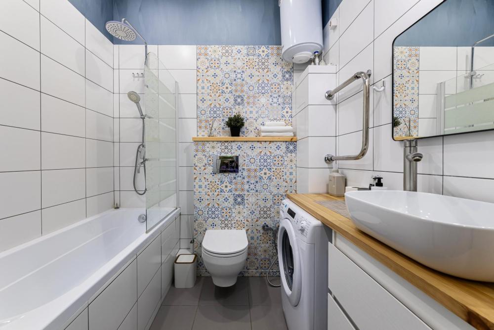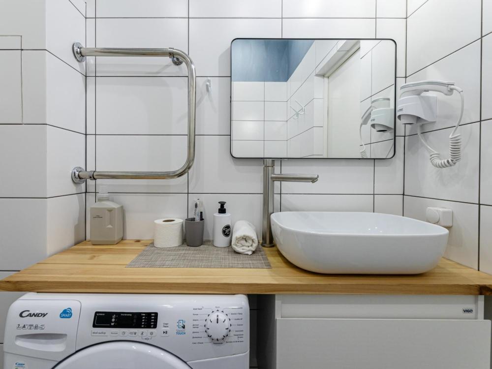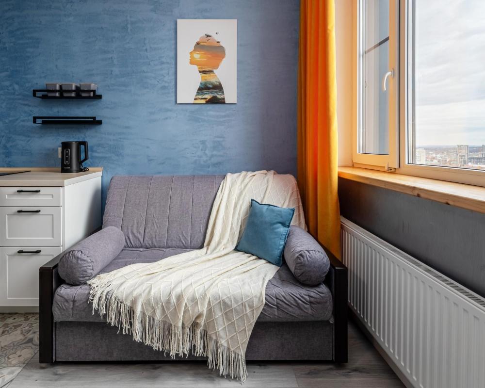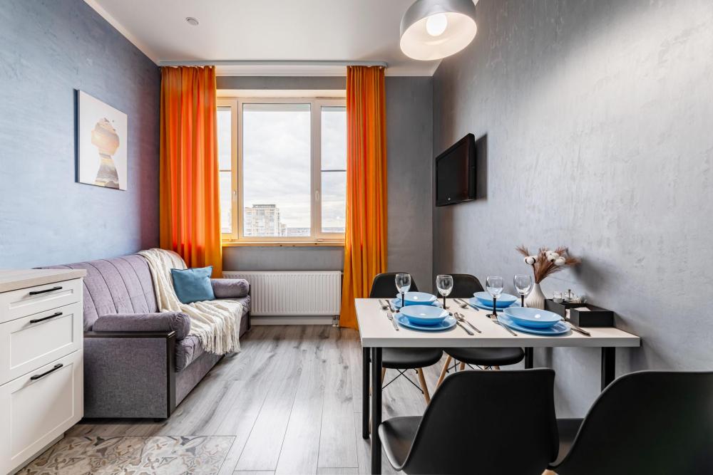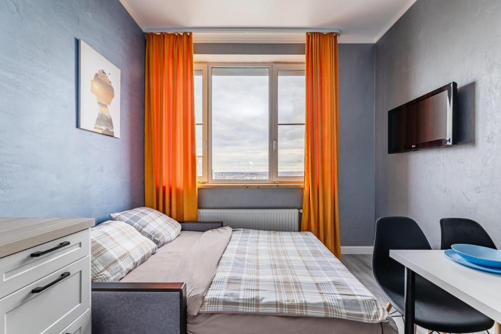 Уютные однокомнатные апартаменты, оборудованные всем необходимым для комфортного проживания. В квартире есть всё необходимое: двуспальная кровать, раскладывающийся диван, телевизор, Wi-Fi, на кухне плита, духовка электрический чайник, микроволновая печь, холодильник, ванна, стиральная машина, утюг, фен. Каждому гостю предоставляется комплект полотенец. На постель чистые комплекты постельного белья.