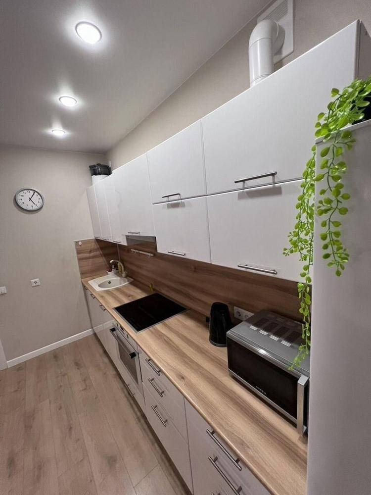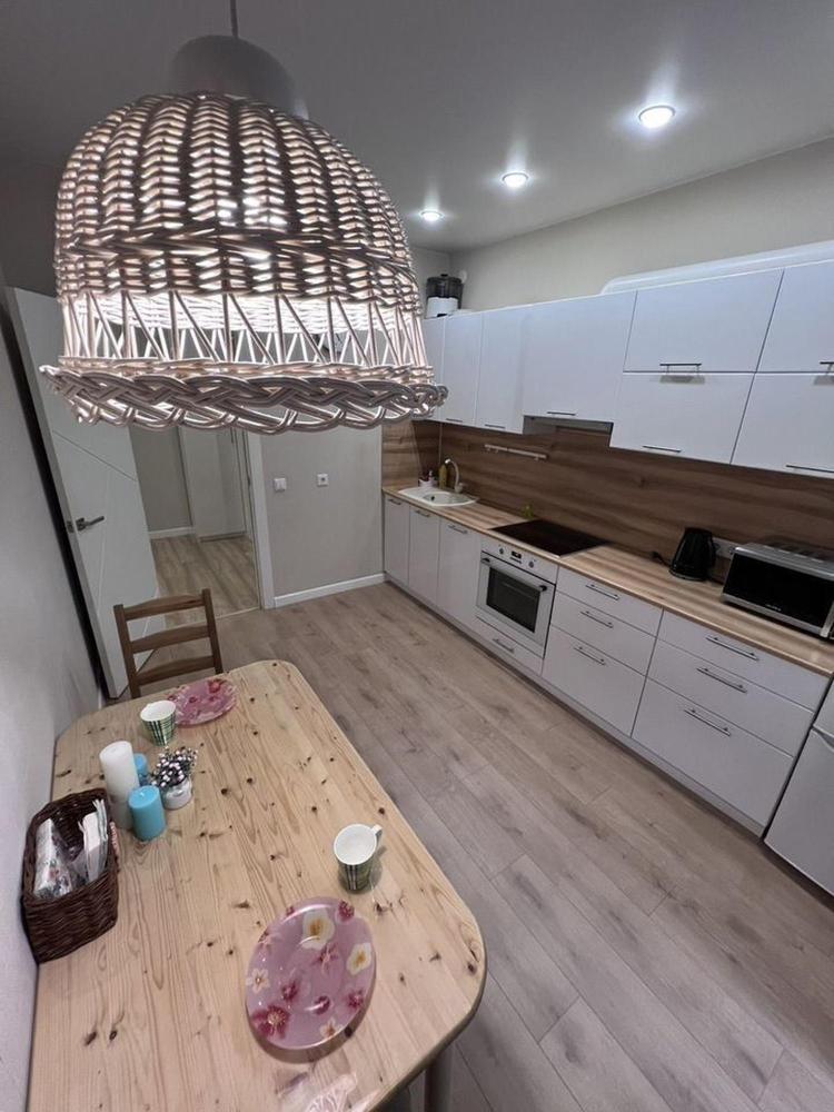 В квартире имеется вся необходимая мебель и бытовая техника для проживания : двуспальная кровать, раскладной диван, ЖК телевизор, электроплита, холодильник, электрический чайник, посуда и столовые приборы, сковороды и кастрюли, стиральная машинка, постельное белье, полотенца, душевые нaбoры для каждогo гocтя.