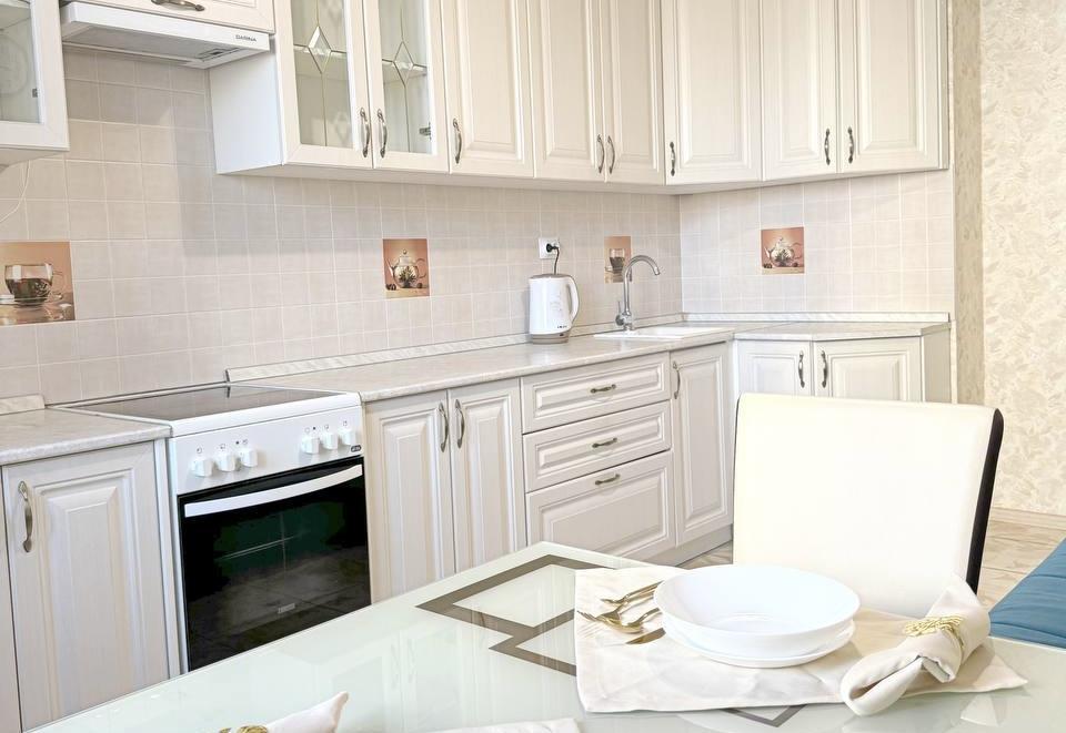 Уютная 1-к квартиpa в центре Казaни около аквапарка Ривьера в ЖК «Современник». В апартаментах спальные места 2+2 (кровать/диван), по запросу сможем предоставить доп. спальное место; — Для комфортного проживания в квартире есть все необходимое: оборудованная кухня со всем необходимым - электрическая варочная панель, духовой шкаф, микроволновая печь, вытяжка, эл. чайник, набор посуды для приготовления пищи (сковорода, кастрюля, а также приборы), посуда на 4 персоны и столовые приборы. Спальня-гостиная - двуспальная кровать с ортопедическим матрасом, кабельное ТВ, двуспальный диван, кондиционер, Wi-Fi интернет, набор подушек 70х70 и одеял, утюг, гладильная доска, сушилка для белья, фен и стиральная машина. Постельное белье мы не застилаем, т.к. оно предоставляется в упаковке. Полотенца (банные и для рук), шампунь и гель для душа в наборе.