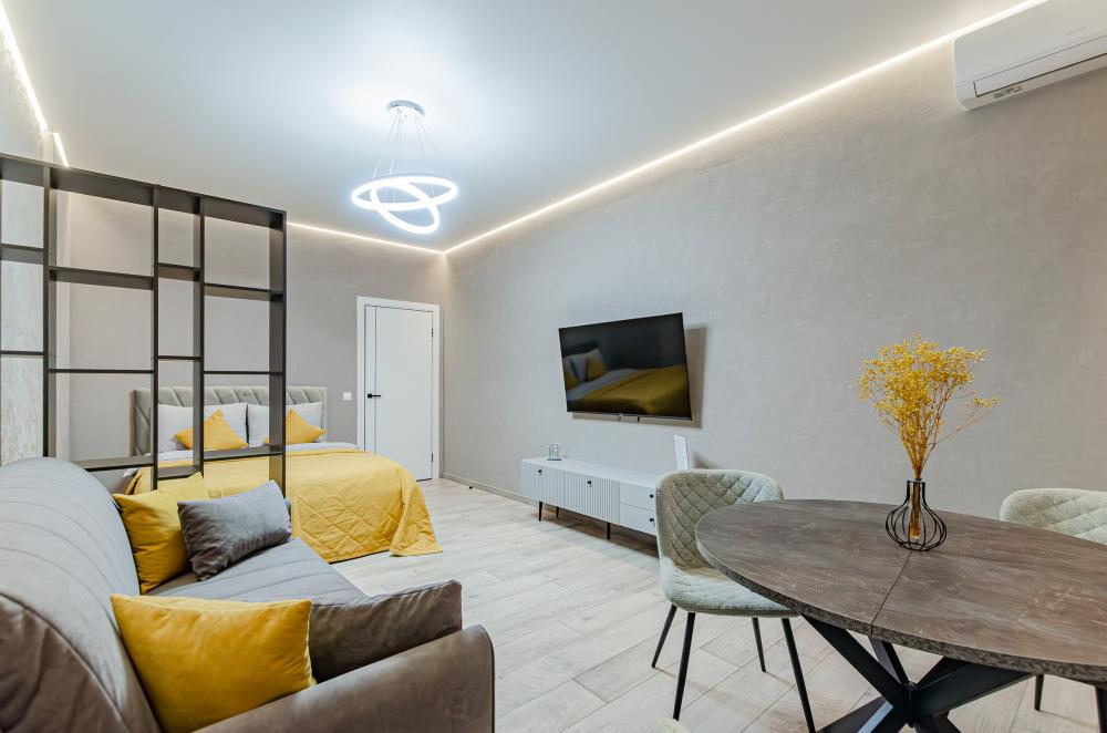 Апартаменты с панорамными окнами и видом на всю Казань и воду, высокие потолки 3,2 м и уютная продуманная обстановка со всем необходимым. Рассматриваем возможность среднесрочной аренды от 1 мес и более! При аренде от 7 дней скидка! Возможно предоставление отчетных документов, БЕЗ дополнительной оплаты! Всегда открыты для диалога по любым вопросам! Полностью оборудованная квартира с комфортом для проживания: постельное белье, полотенца и ванные принадлежности. Кухня с чайником, микроволновой печью, холодильником, посудомоечной и стиральной машинами. Уютная зона отдыха с телевизором и Wi-Fi. Отдельная постирочная комната для удобства. спальные места представлены двуспальной кроватью и раскладным диваном.
