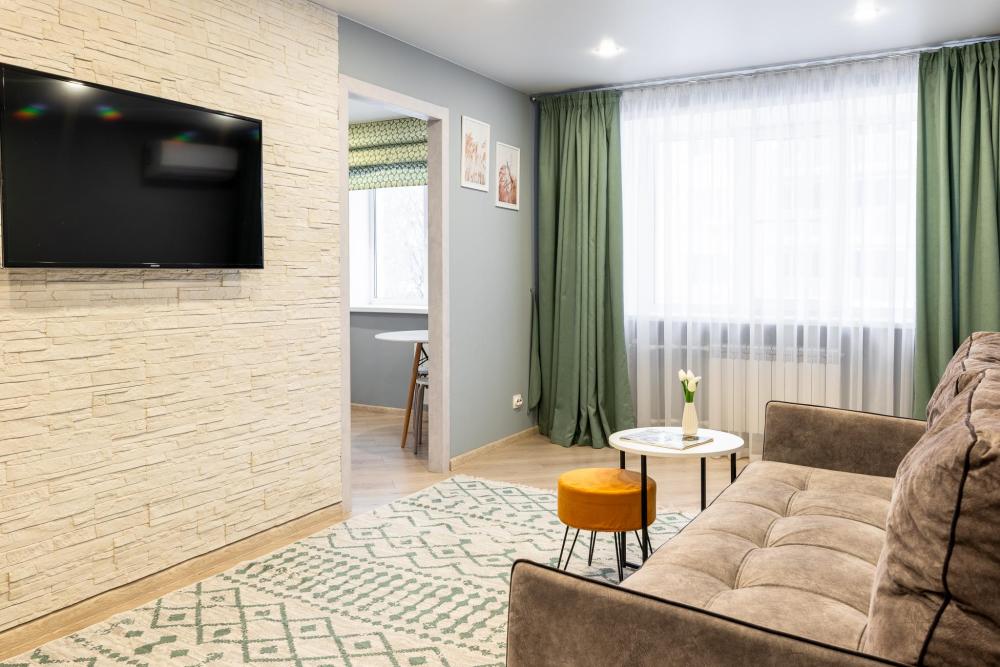 Уютные апартаменты для проживания гостей. B квартиpе 4 спальных меcт: Двухcпaльная кровать + раcкладной диван. В квартире есть все для комфортного проживания: полностью оборудованная кухня, СВЧ, холодильник, фен, утюг, гладильная доска, стиральная машина. Чистое постельное белье и полотенца.
