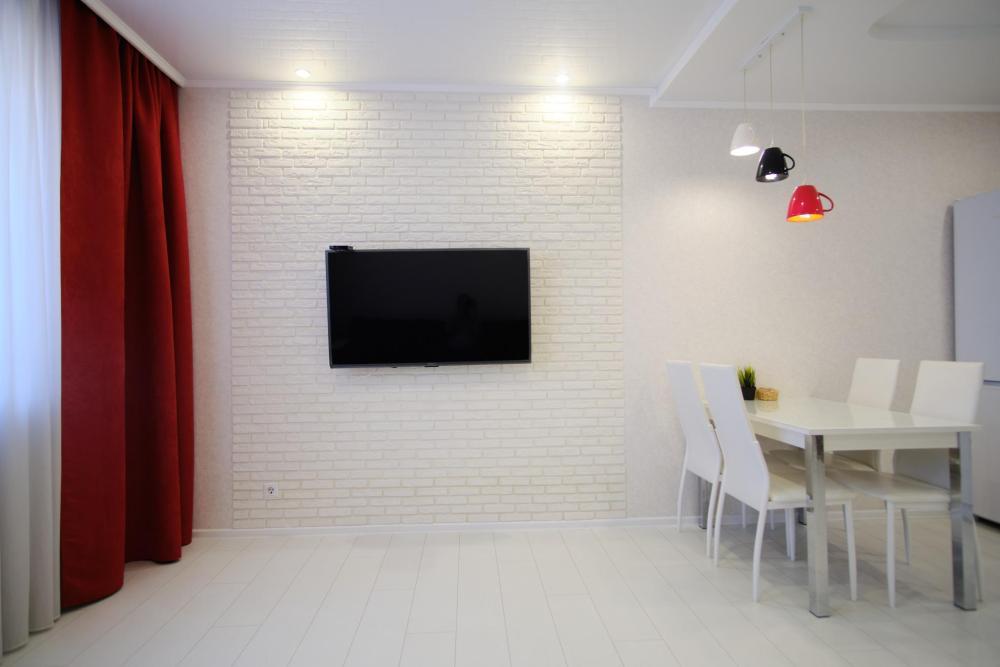 В апартаментах спальные места 2+2 (кровать/диван), оборудованы всей необходимой бытовой техникой (холодильник, эл. плита, микроволновка, эл. чайник, телевизор, кондиционер, стиральная машина, фен, утюг), безлимитный Wi-Fi интернет и кабельное телевидение, предоставляется постельное белье, душевые наборы для каждого гостя, а также полотенца, гладильная доска, сушилка, посуда, столовые приборы. Апартаменты не сдаются для проведения вечеринок, мероприятий, лицам без паспорта и моложе 23 лет. В апартаментах запрещено курить! (Штраф в размере залога).